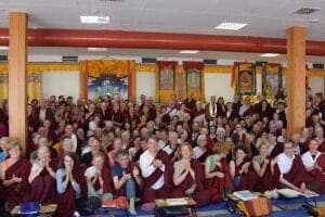 On the full-moon day of Saga Dawa, the 23rd of May, 2024, more than 200 practitioners from Europe gathered for the second consecutive year in Czech Republic to receive teachings and transmissions from Minling Jetsün Khandro Rinpoche.
