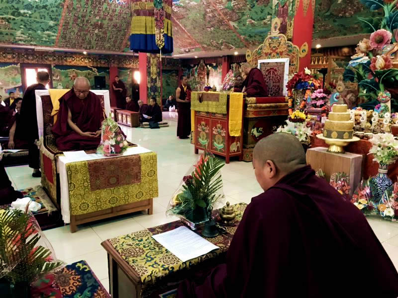On the 18th of February, the entire family and Mindrolling sangha members commemorated the 10th Parinirvana Anniversary of our peerless root guru, Kyabje Mindrolling Trichen Dorje Chang. The entire sangha came together to practice the profound sadhana of Minling Dorsem led by Venerable Dagpo Rinpoche and Minling Umdze Venerable Choktrul Jigdral Ngawang Kunga Rinpoche. The ceremony was attended by Minling Sangyum Kushog, Jetsün Khandro Rinpoche, Jetsunla, Dungse Rinpoche, Jetsün Rinpoche, Venerable Nyoshul Khenpo Yangsi Rinpoche, monks, nuns and lay practitioners. Members of the Mindrolling sangha in Virginia, New York City and Taiwan also gathered to commemorate the parinirvana of Kyabje Mindrolling Trichen making vast offerings and prayers.