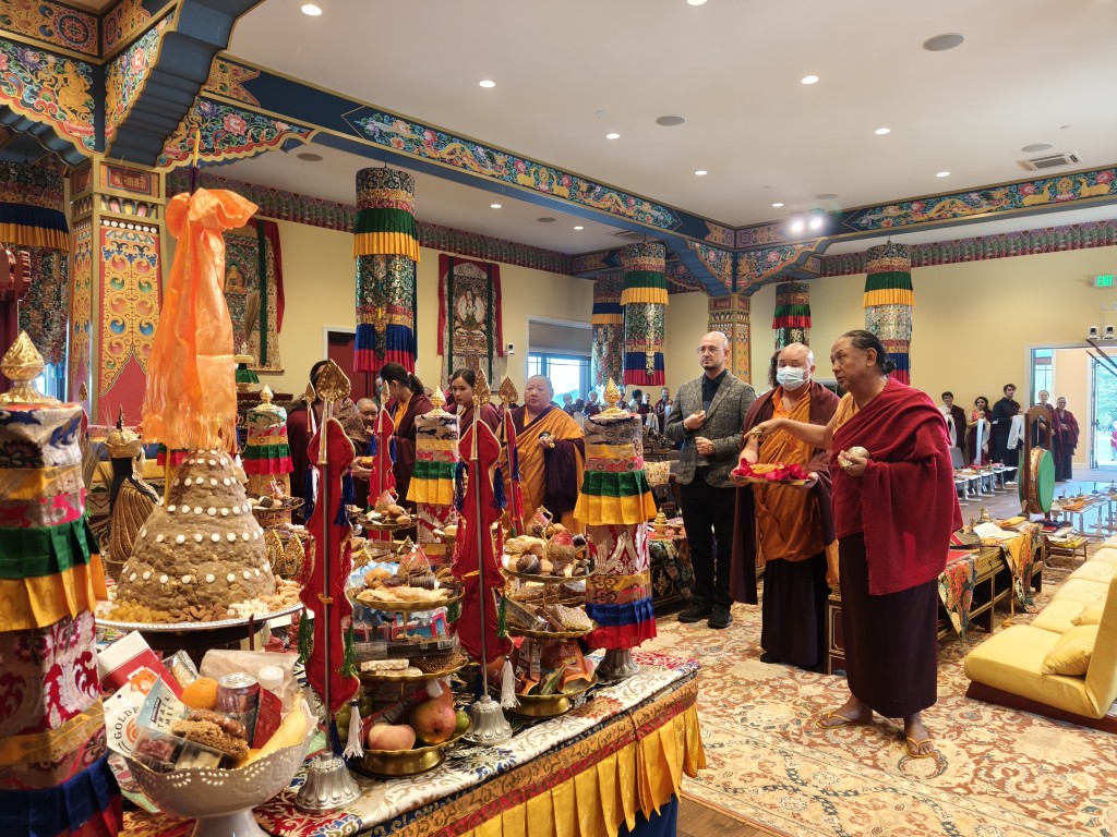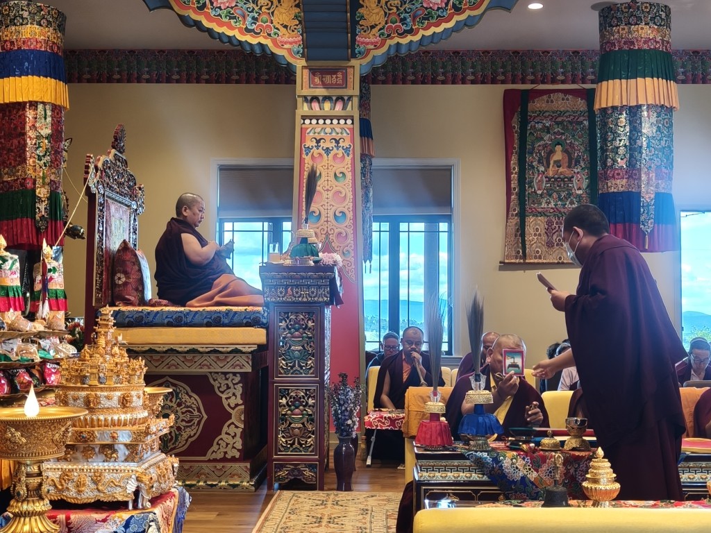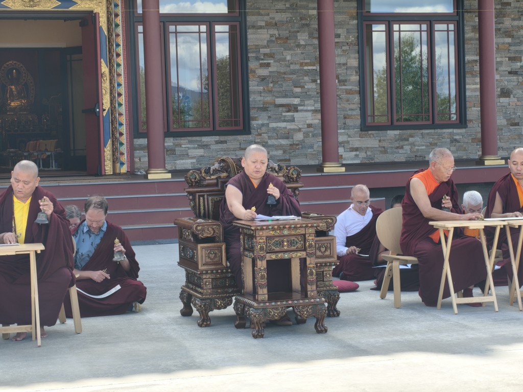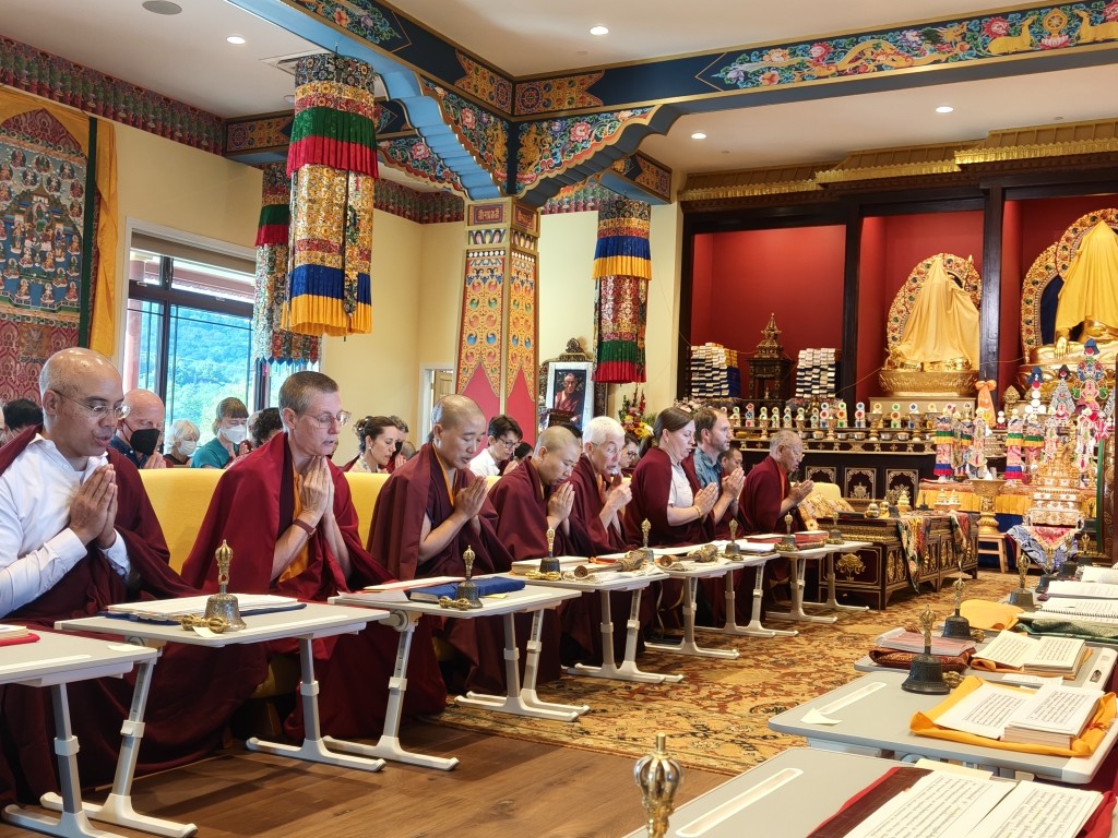 The Birthday of Minling Jetsün Khandro Rinpoche was celebrated on the 19th of August. Minling Dungse Rinpoche and Minling Jetsün Rinpoche offered mandala, ten sum, and the entire assembly of monks, nuns, and western practitioners made extensive prayers for Rinpoche’s long life and vast unobstructed Dharma activity.