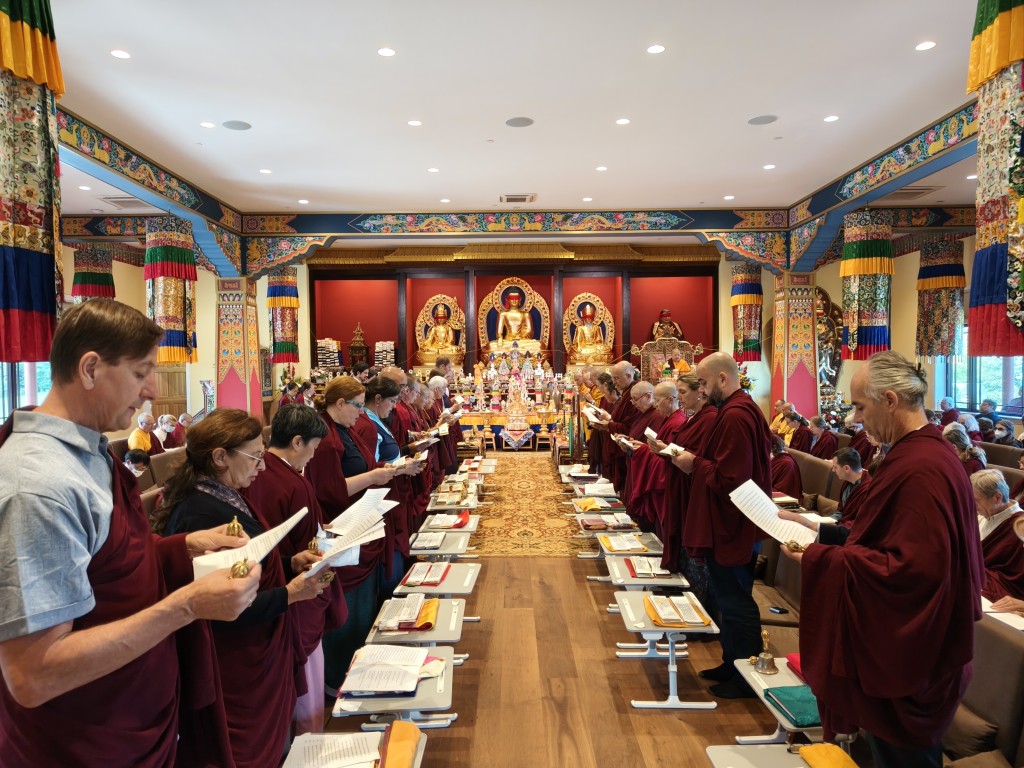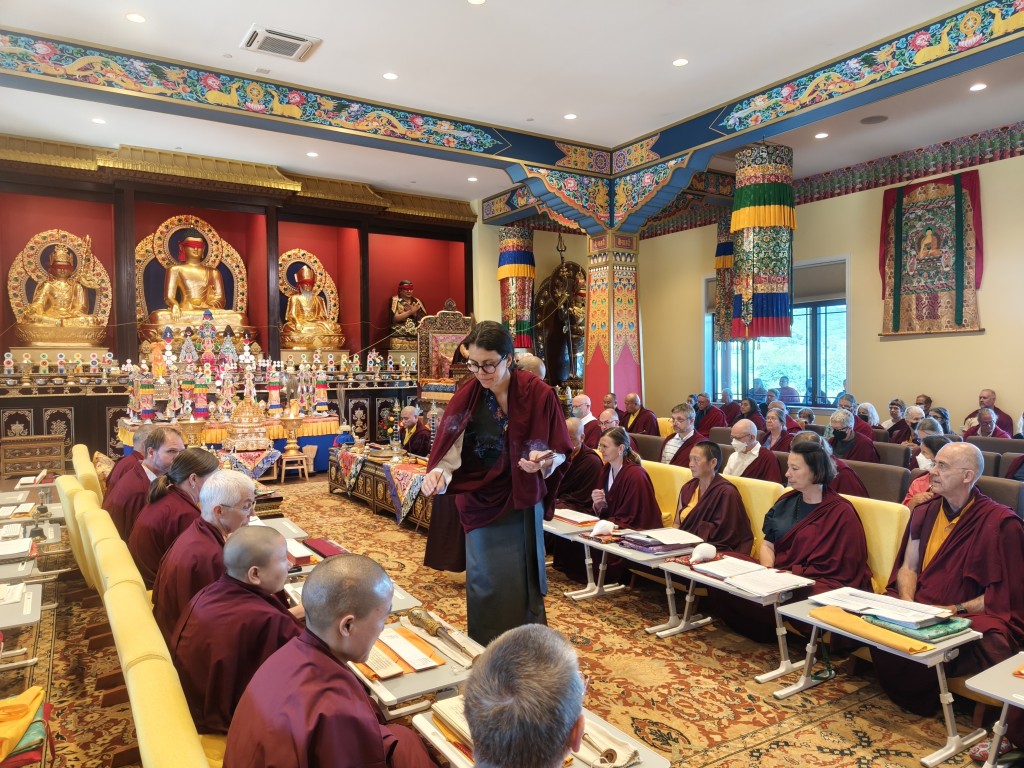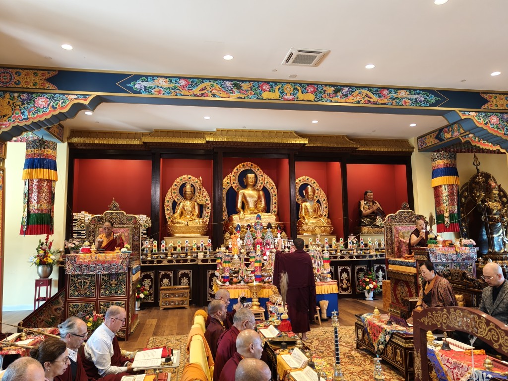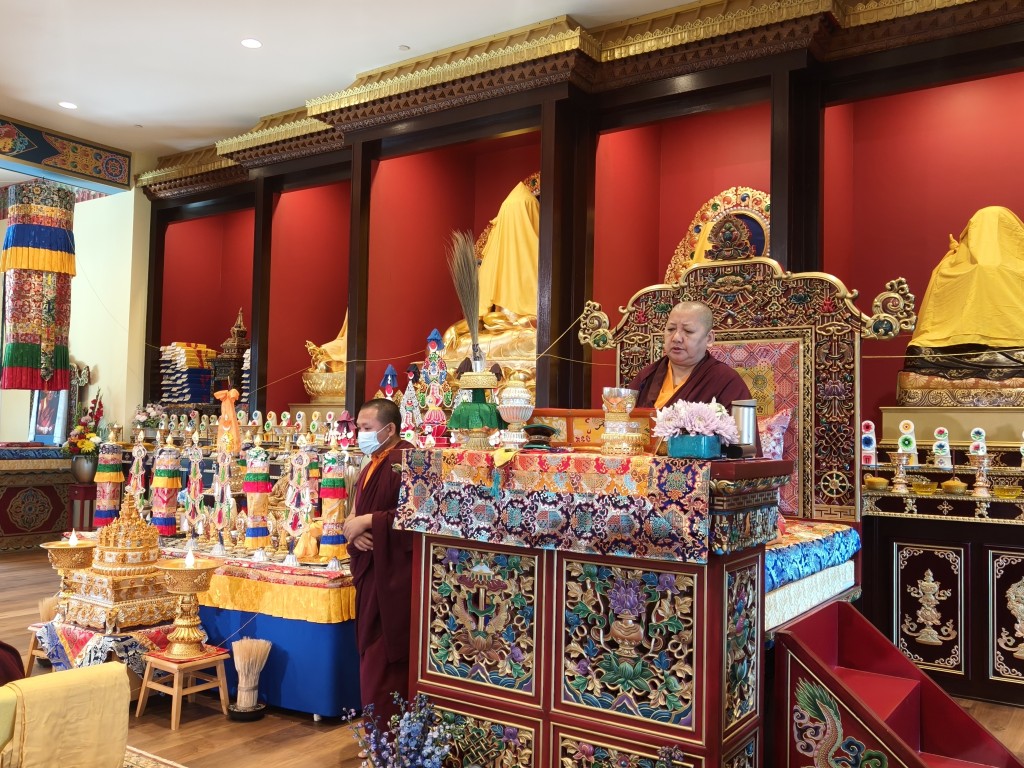 The Birthday of Minling Jetsün Khandro Rinpoche was celebrated on the 19th of August. Minling Dungse Rinpoche and Minling Jetsün Rinpoche offered mandala, ten sum, and the entire assembly of monks, nuns, and western practitioners made extensive prayers for Rinpoche’s long life and vast unobstructed Dharma activity.