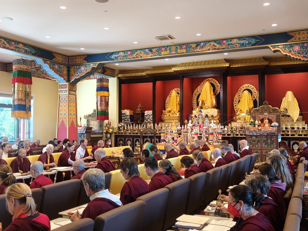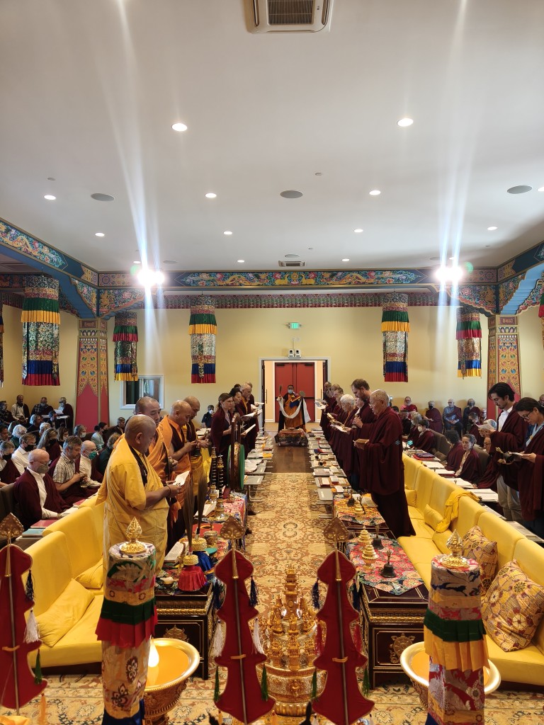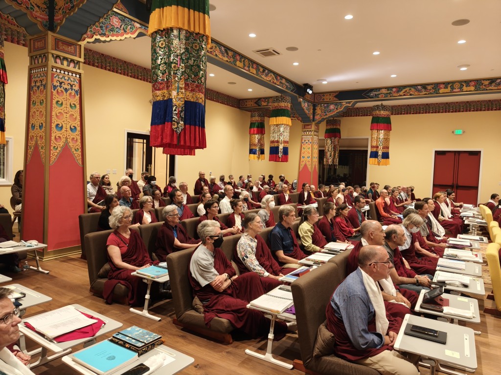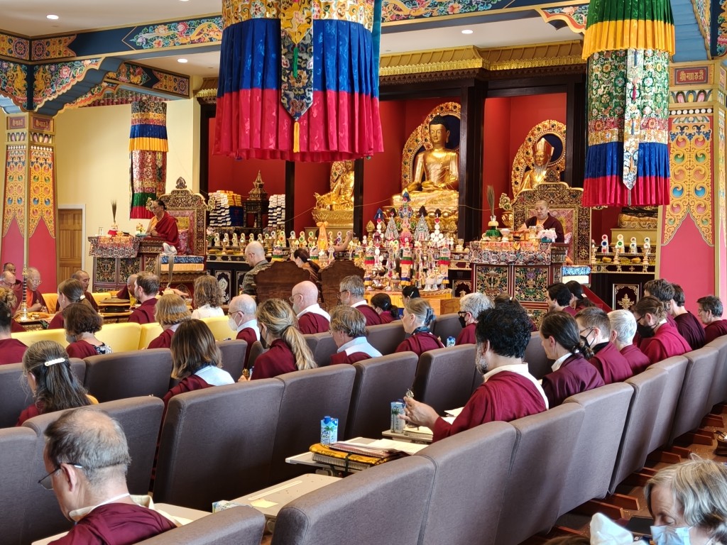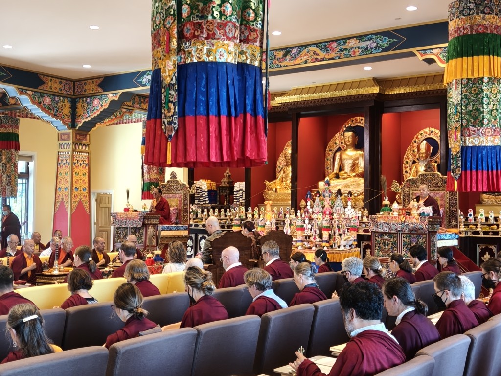 On the first day of teachings, after the sangha offered the mandala and ten sum (body, speech, and mind offerings) to Rinpoche, the Practice Intensive retreat began in Mindrol Gatsal. For 13 days, the annual Practice Intensive Retreat continued as Rinpoche bestowed teachings and instructions intertwined with practice days in the format of gar, dharma encampment.