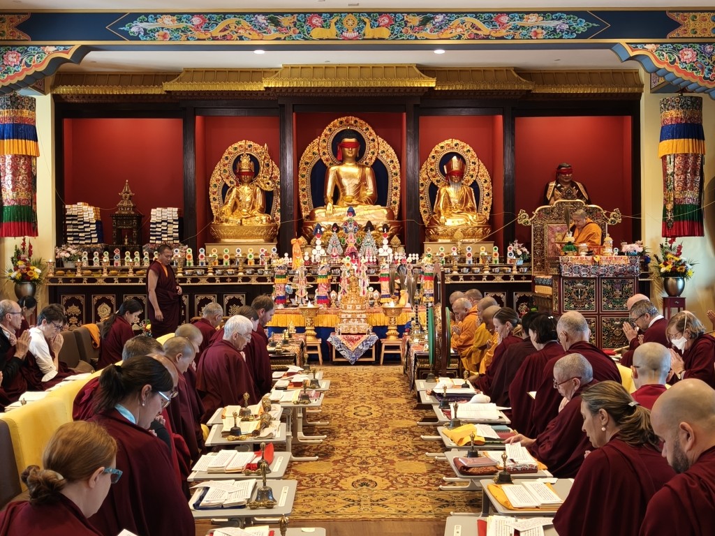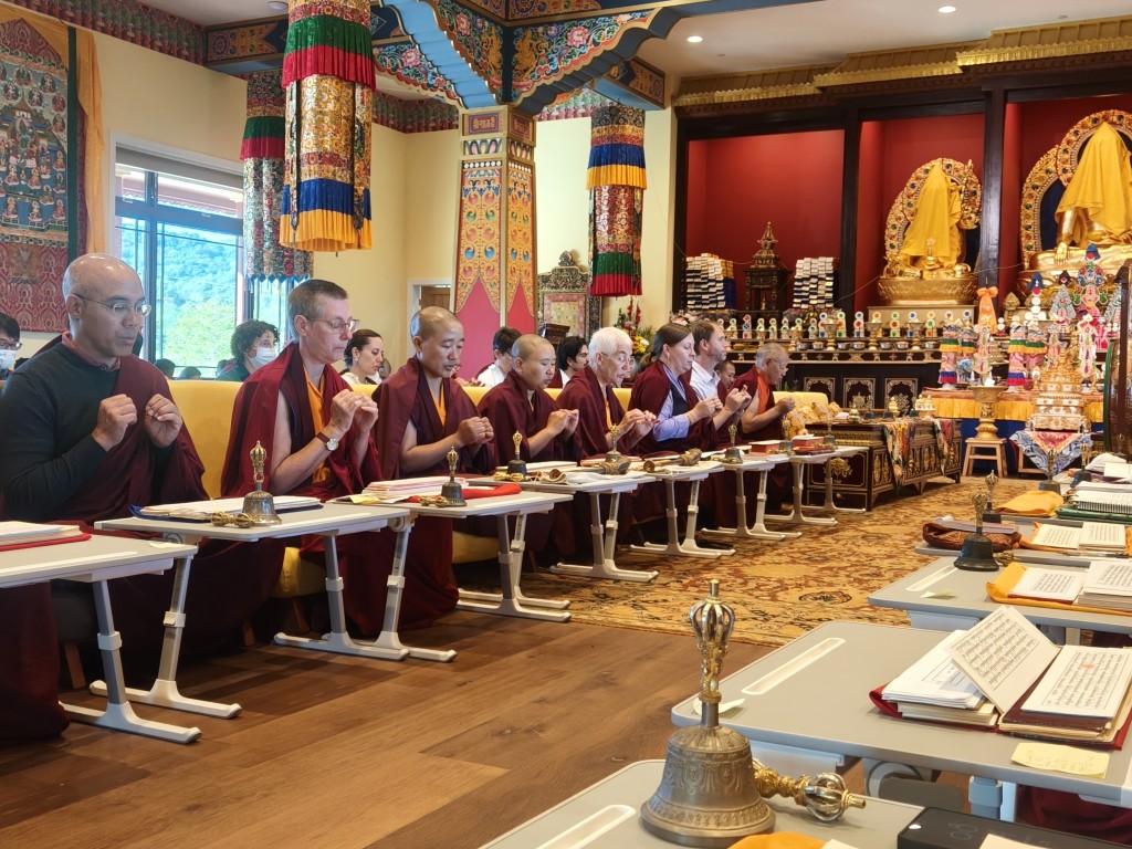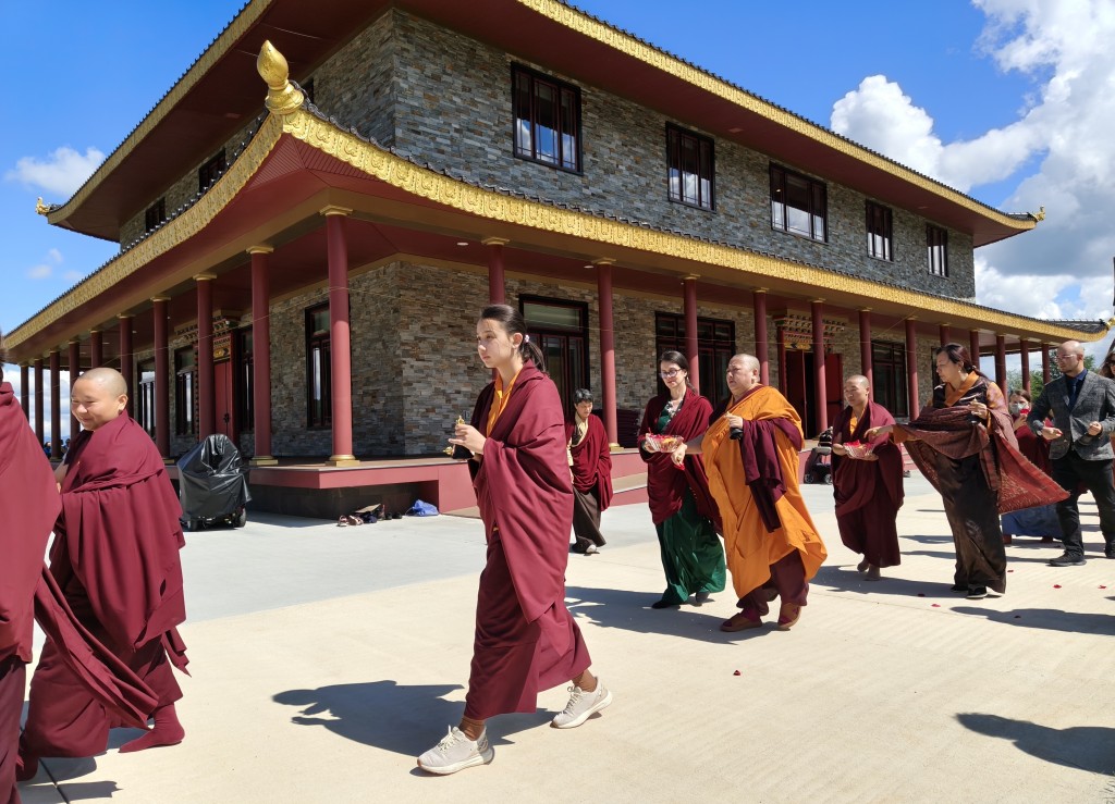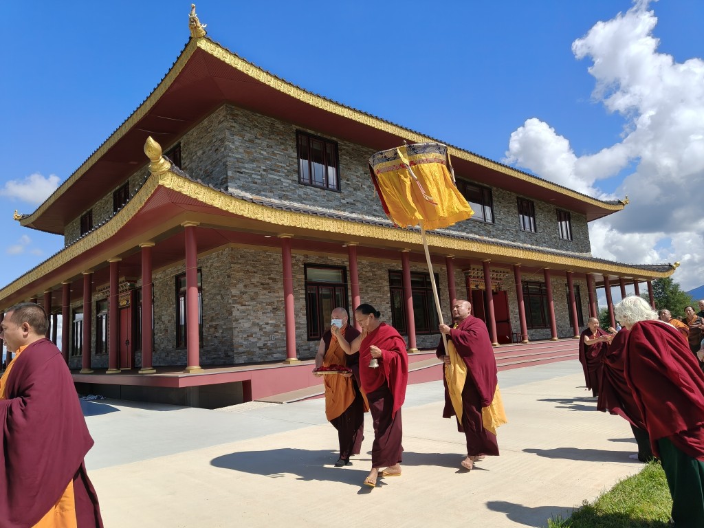 With the blessings and guidance of Minling Jetsün Khandro Rinpoche, Minling Jetsünla, and senior monks and nuns, the po chog and rabne of Mindrol Gatsal were completed this year. The official inauguration will be held in July, 2026. The Mindrol Gatsal inauguration will be a joyful occasion for the Mindrolling International sangha to gather and celebrate the opening of Mindrol Gatsal and the start of the next phase of Minling Pema Gatsal as the seat of Mindrolling in the West.