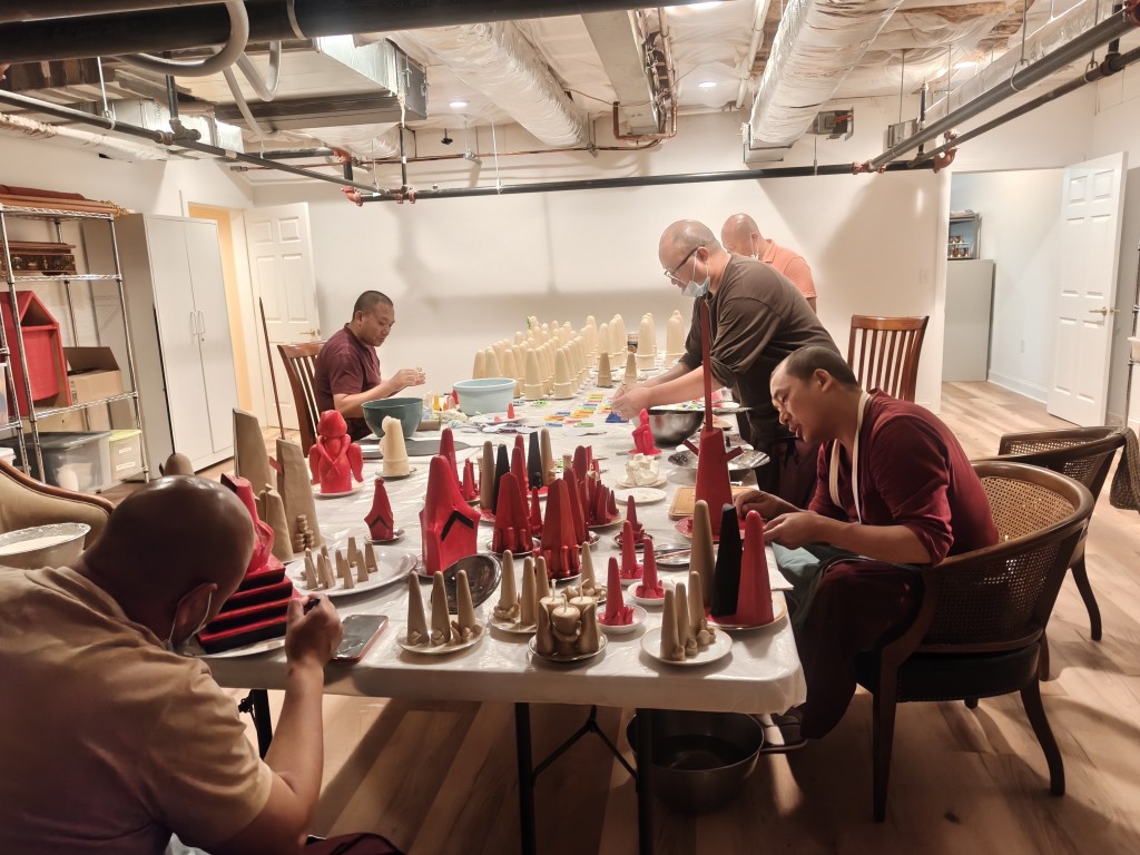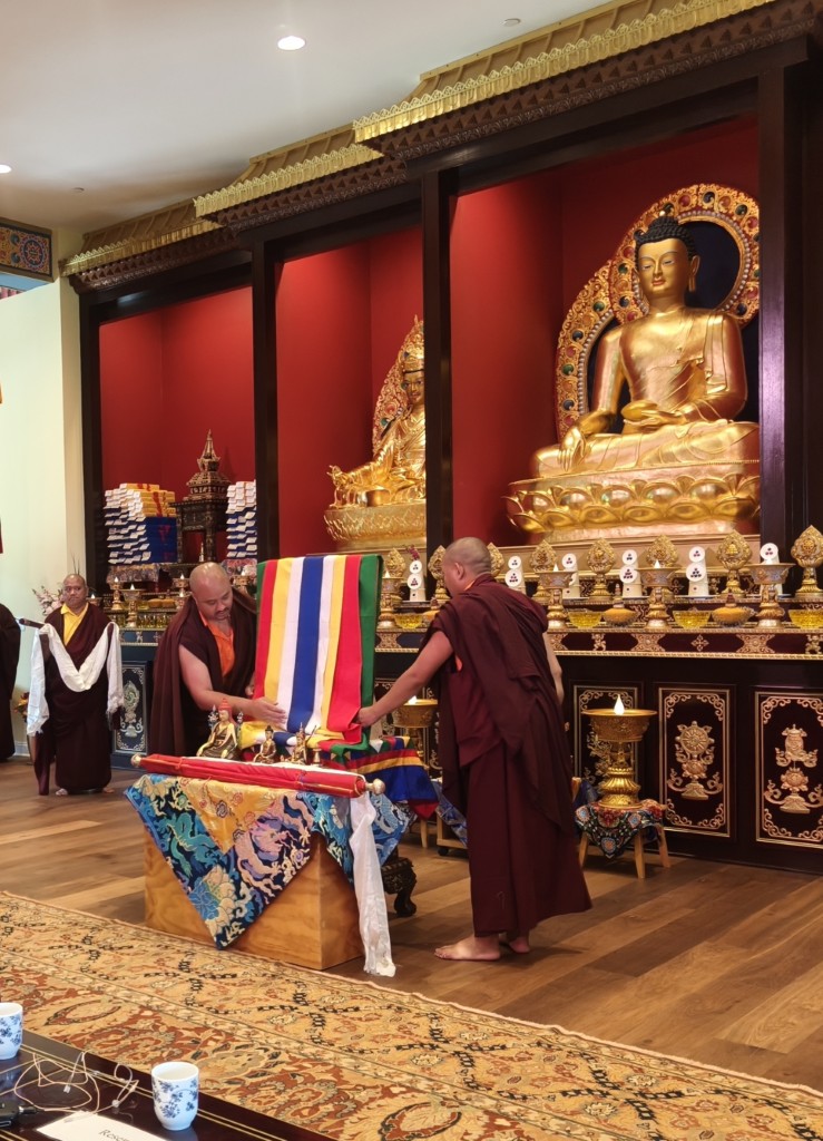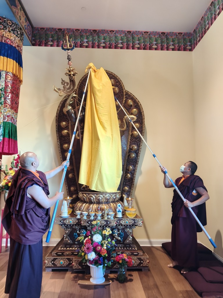 On the 26th of July, the ritual of opening of the eyes took place, as the statues in Ngedon Gatsal received the final stroke of paint filling the eyes by Minling Dungse Rinpoche and Minling Jetsün Khandro Rinpoche.