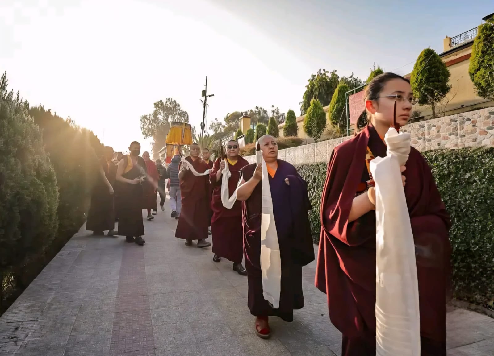 In front of the Great Stupa, the hosting masters from Mindrolling Monastery would, with deep respect, await and welcome Rabjam Rinpoche, day after day.