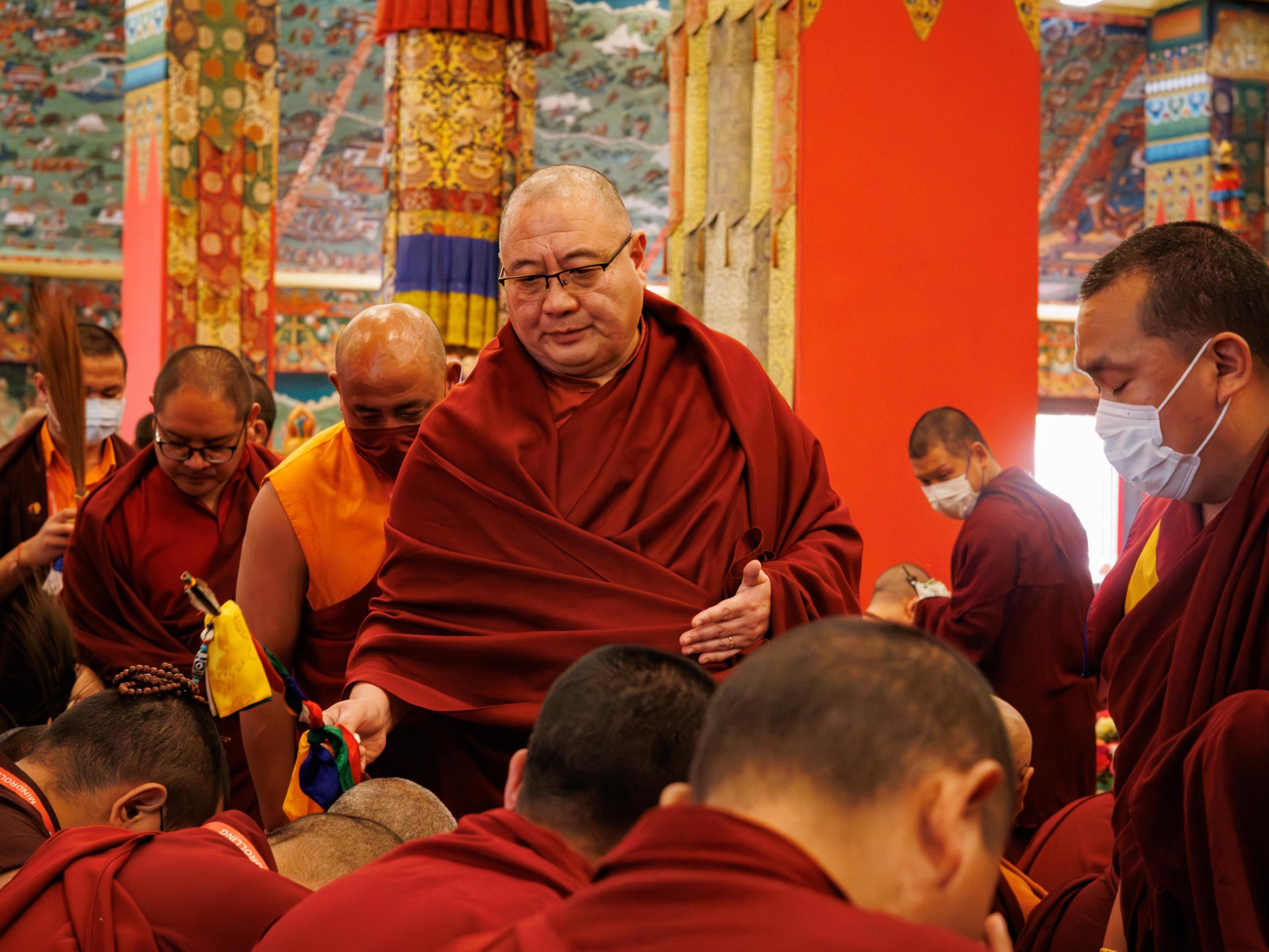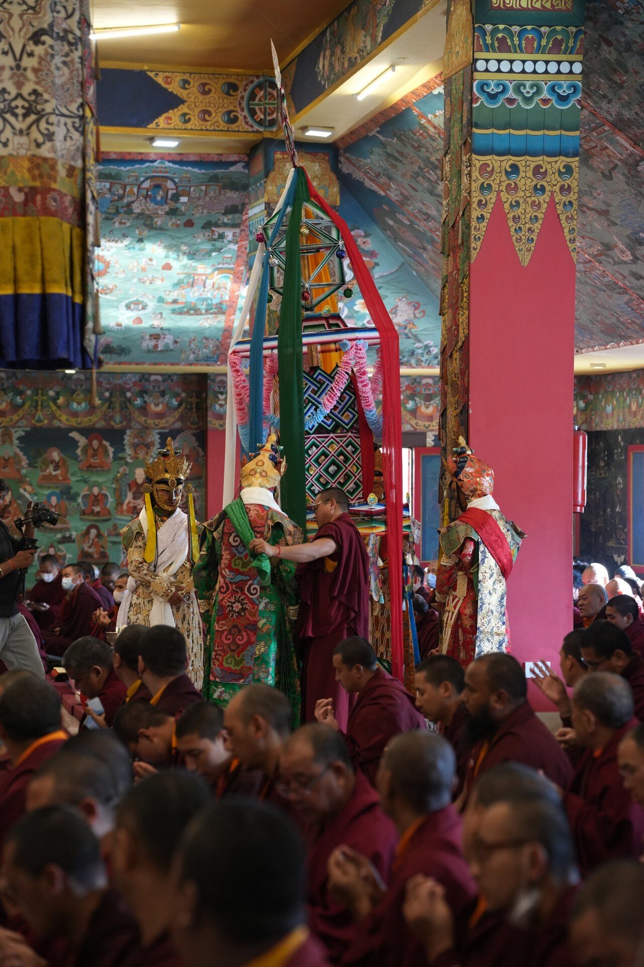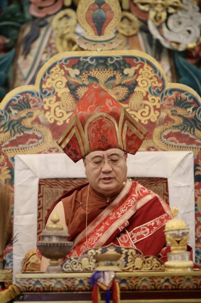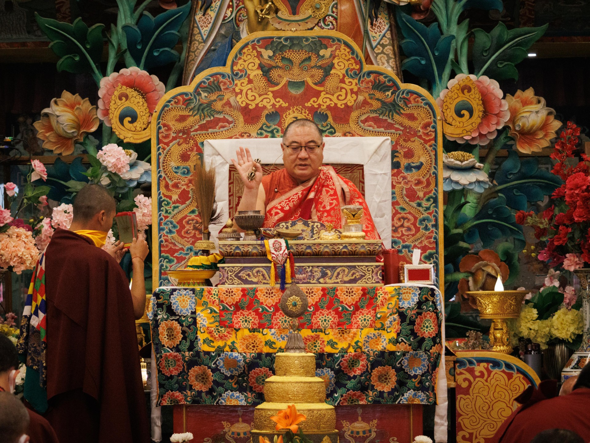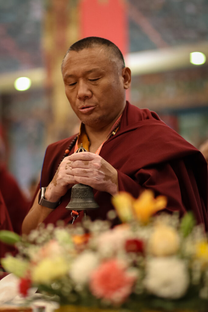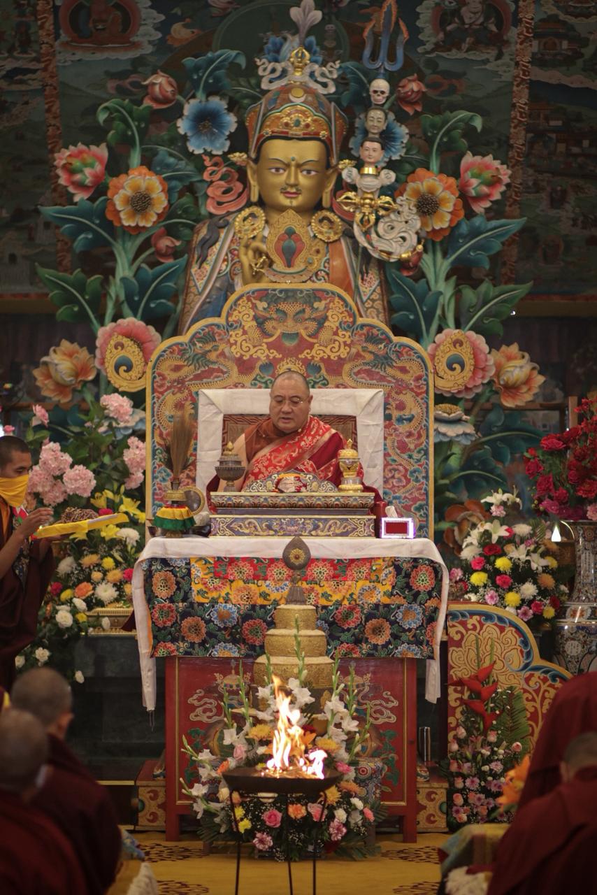 During these afternoon sessions, the young generation of teachers, yangsis, and tulkus performed the wangdrim, bestowing the empowerment articles to each person in the assembled sangha.