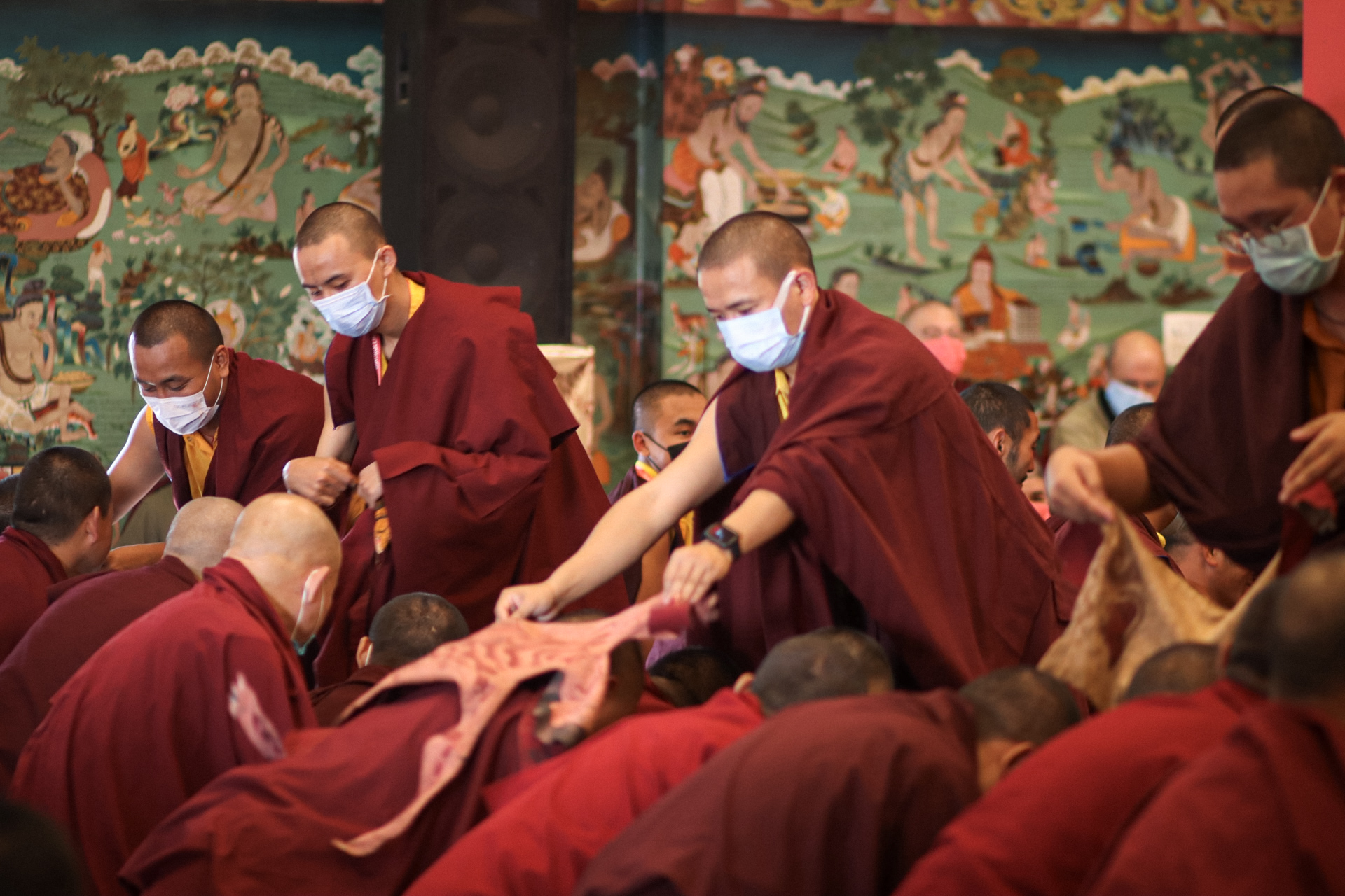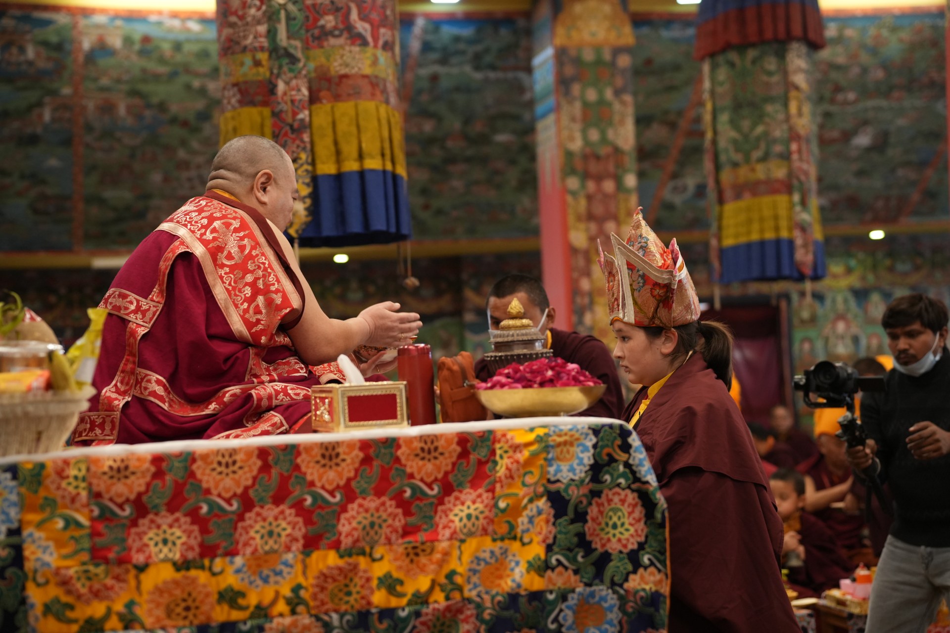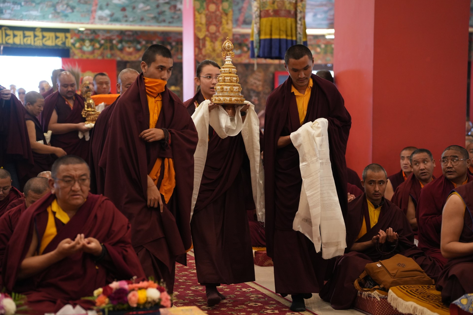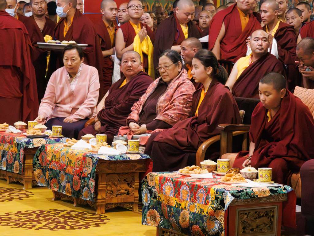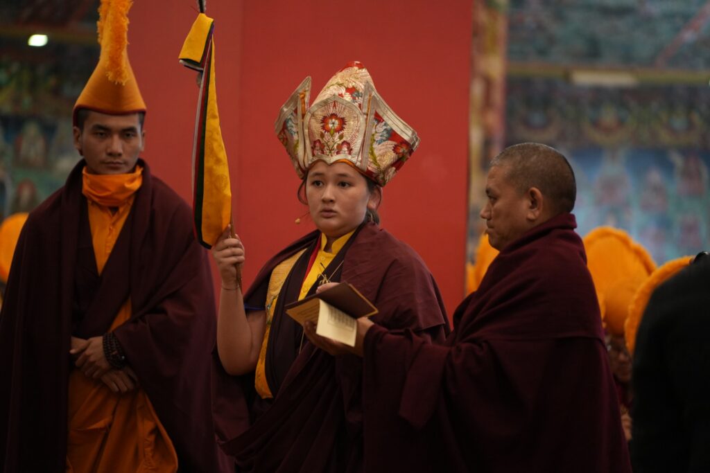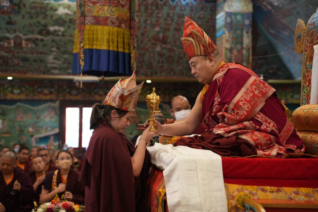 During these afternoon sessions, the young generation of teachers, yangsis, and tulkus performed the wangdrim, bestowing the empowerment articles to each person in the assembled sangha.