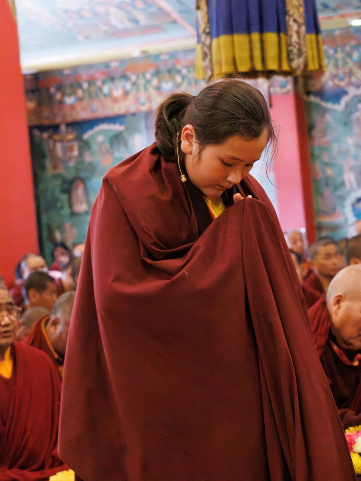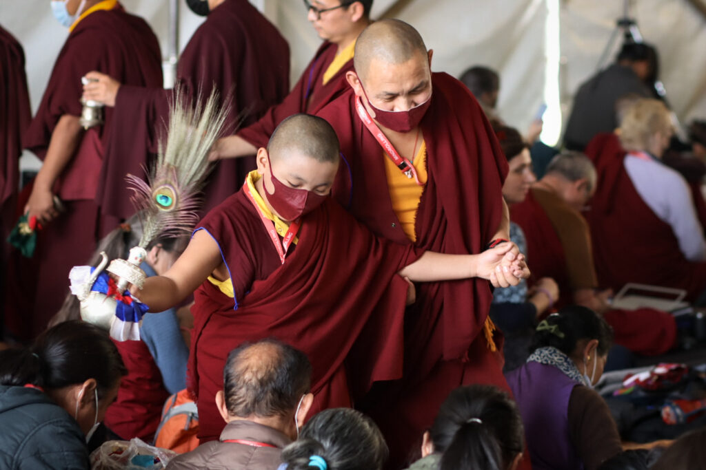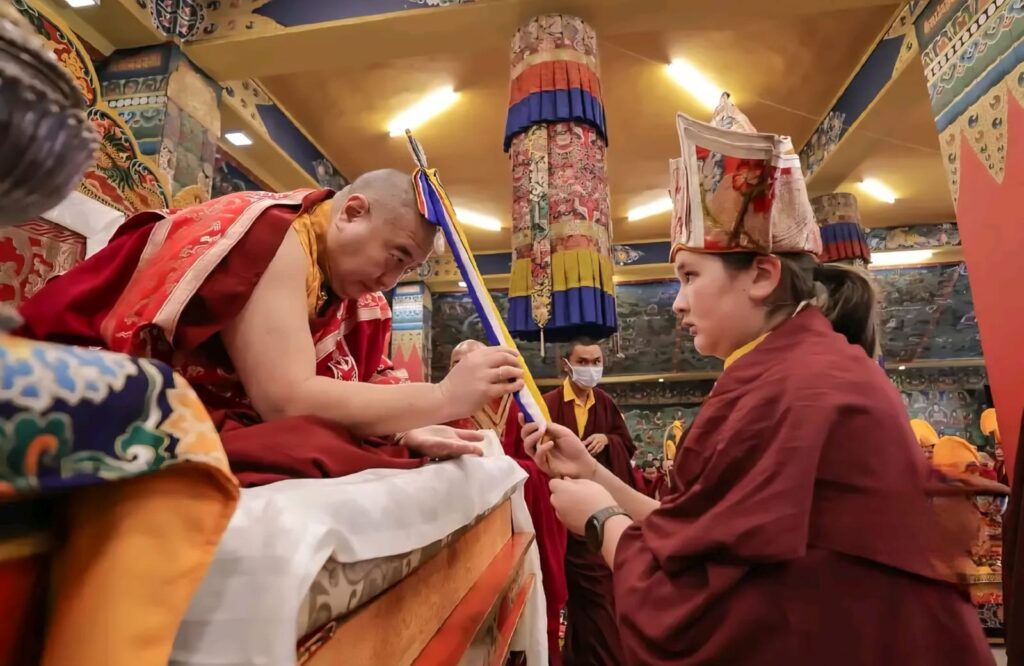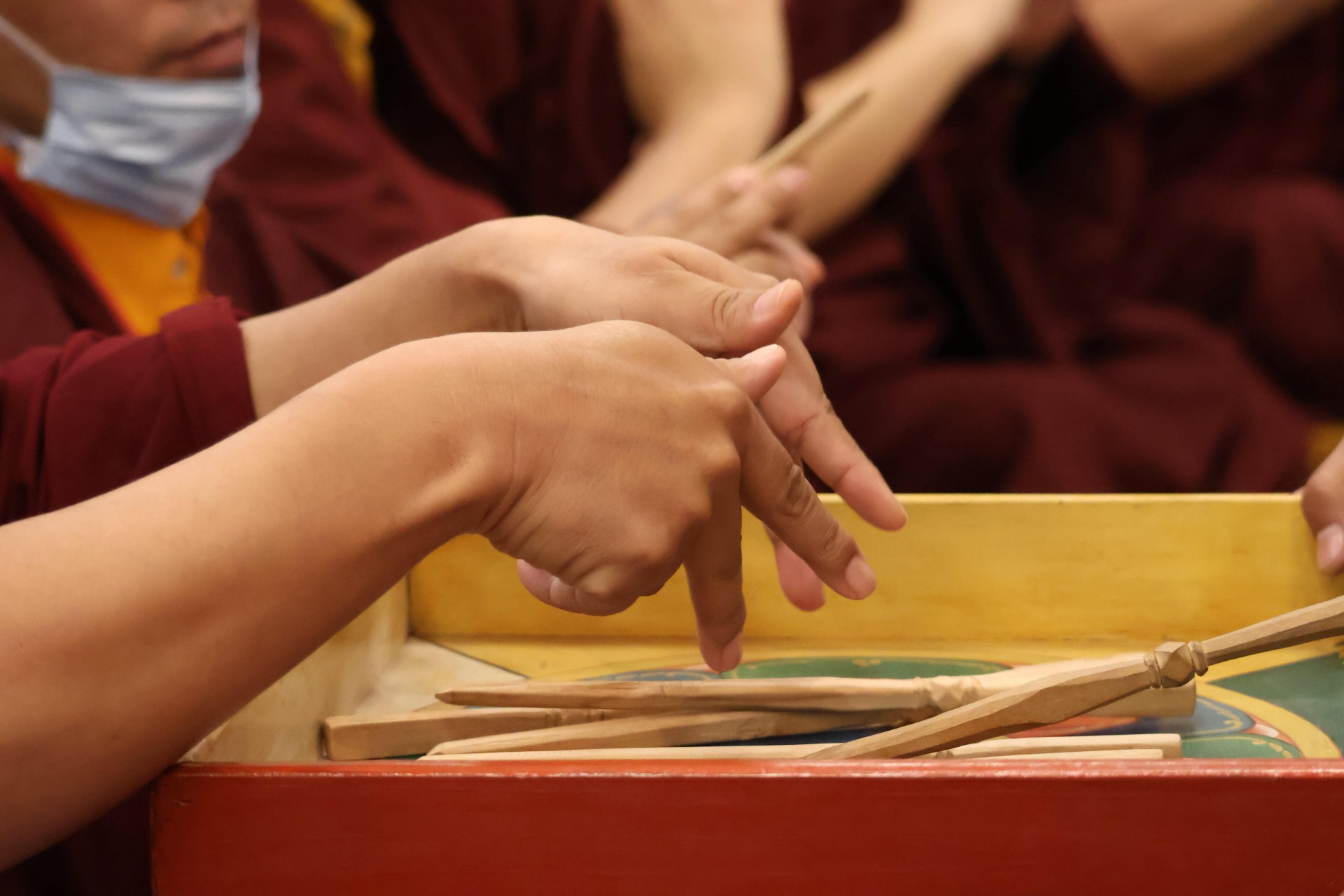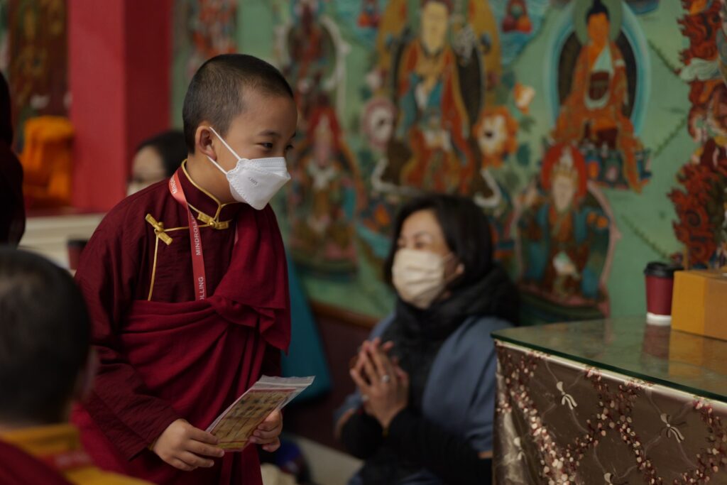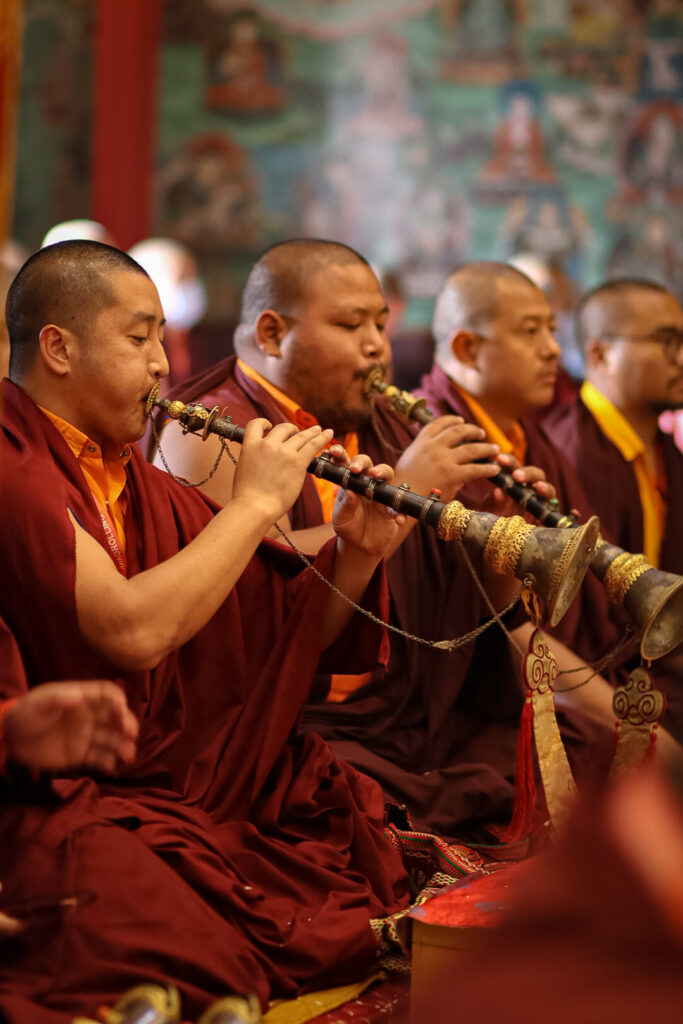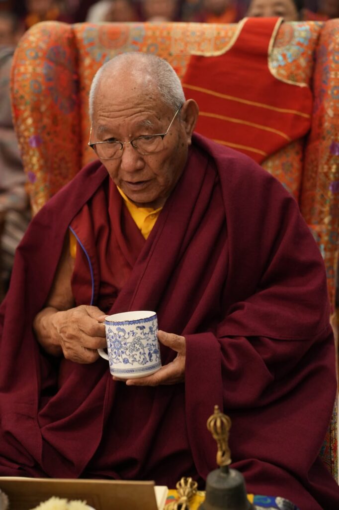 During these afternoon sessions, the young generation of teachers, yangsis, and tulkus performed the wangdrim, bestowing the empowerment articles to each person in the assembled sangha.