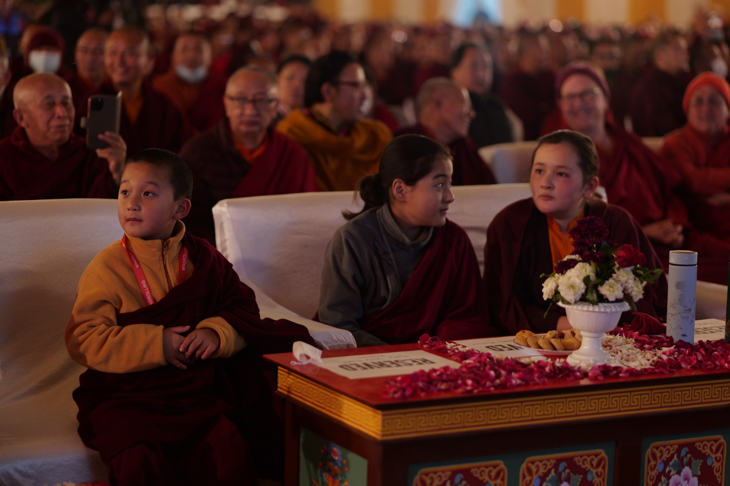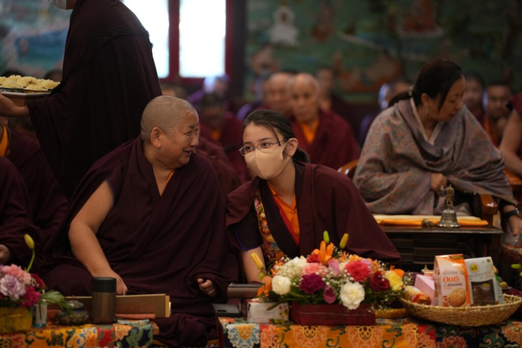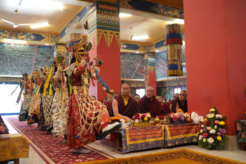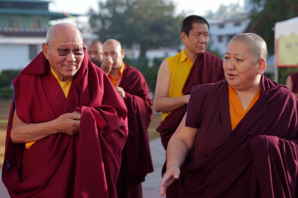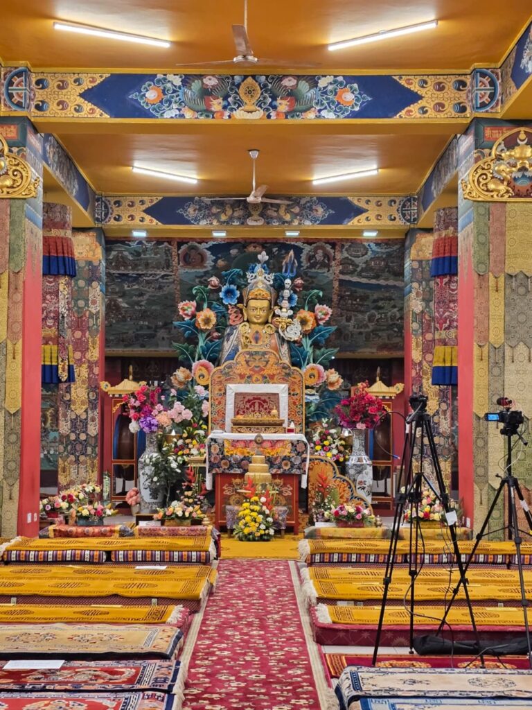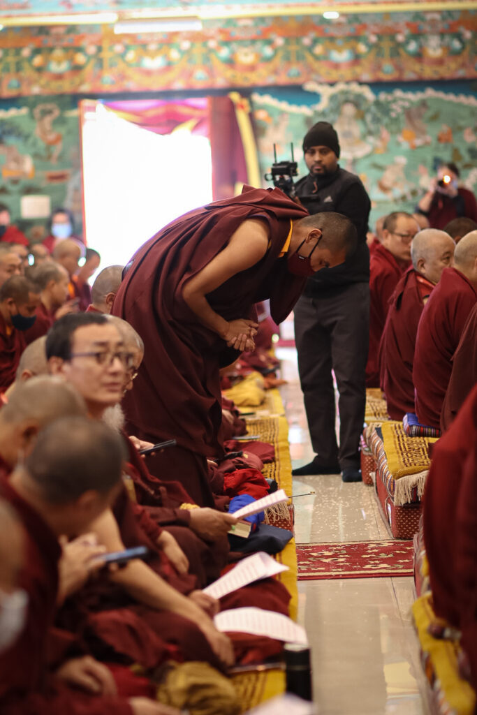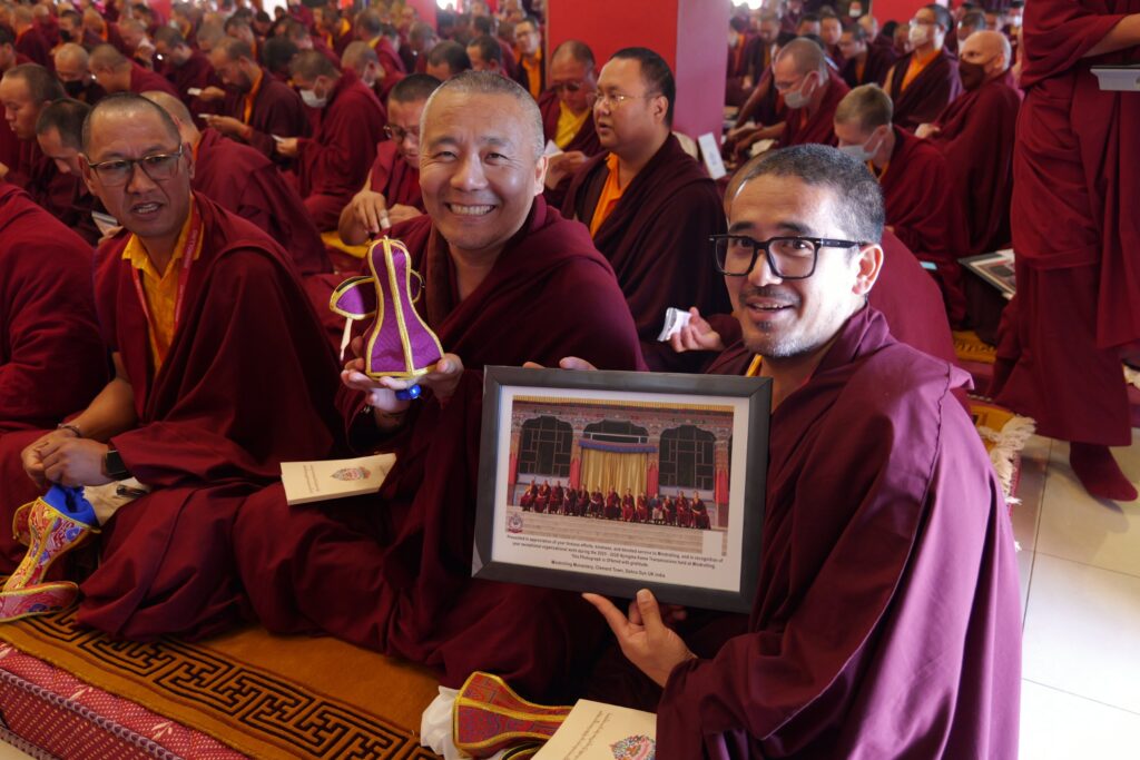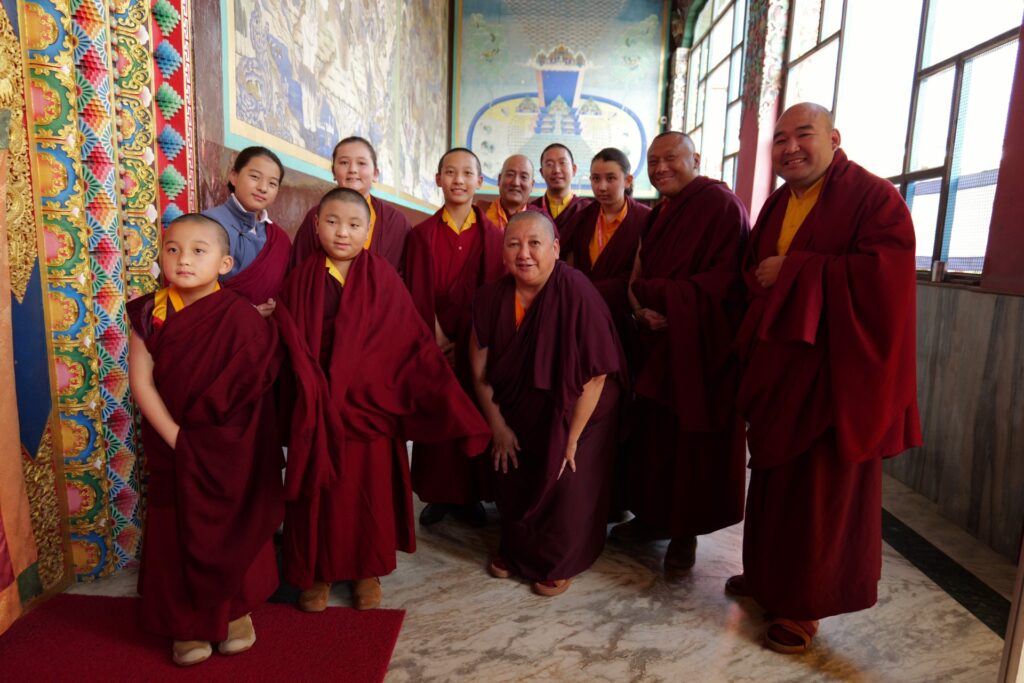 In the morning heartfelt gratitude was expressed to all those who made the transmissions possible, acknowledging the contribution of every individual – from the principal Mindrolling Administrators and Kama Organizers, to the teams of monks, nuns, and Western sangha, as well as all the staff members working hard in the kitchen, security, housekeeping, gardening, together with electricians, plumbers and carpenters. Special appreciation was also extended to the audio-visual team, whose dedicated efforts enabled the connection of spaces within the monastery and made several sessions accessible online to the worldwide sangha.
