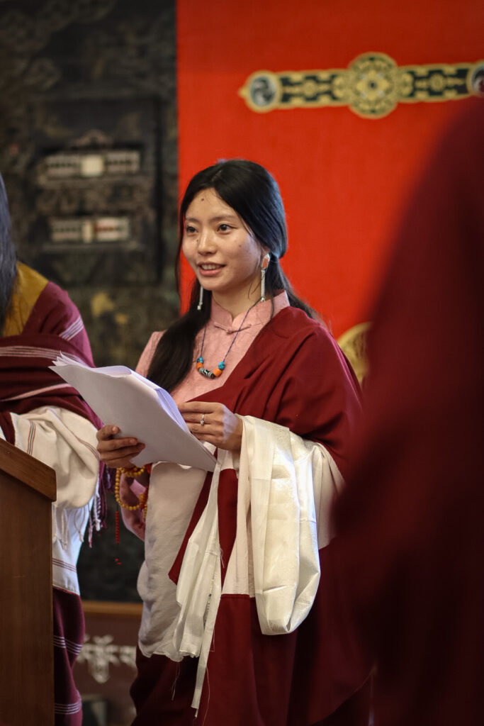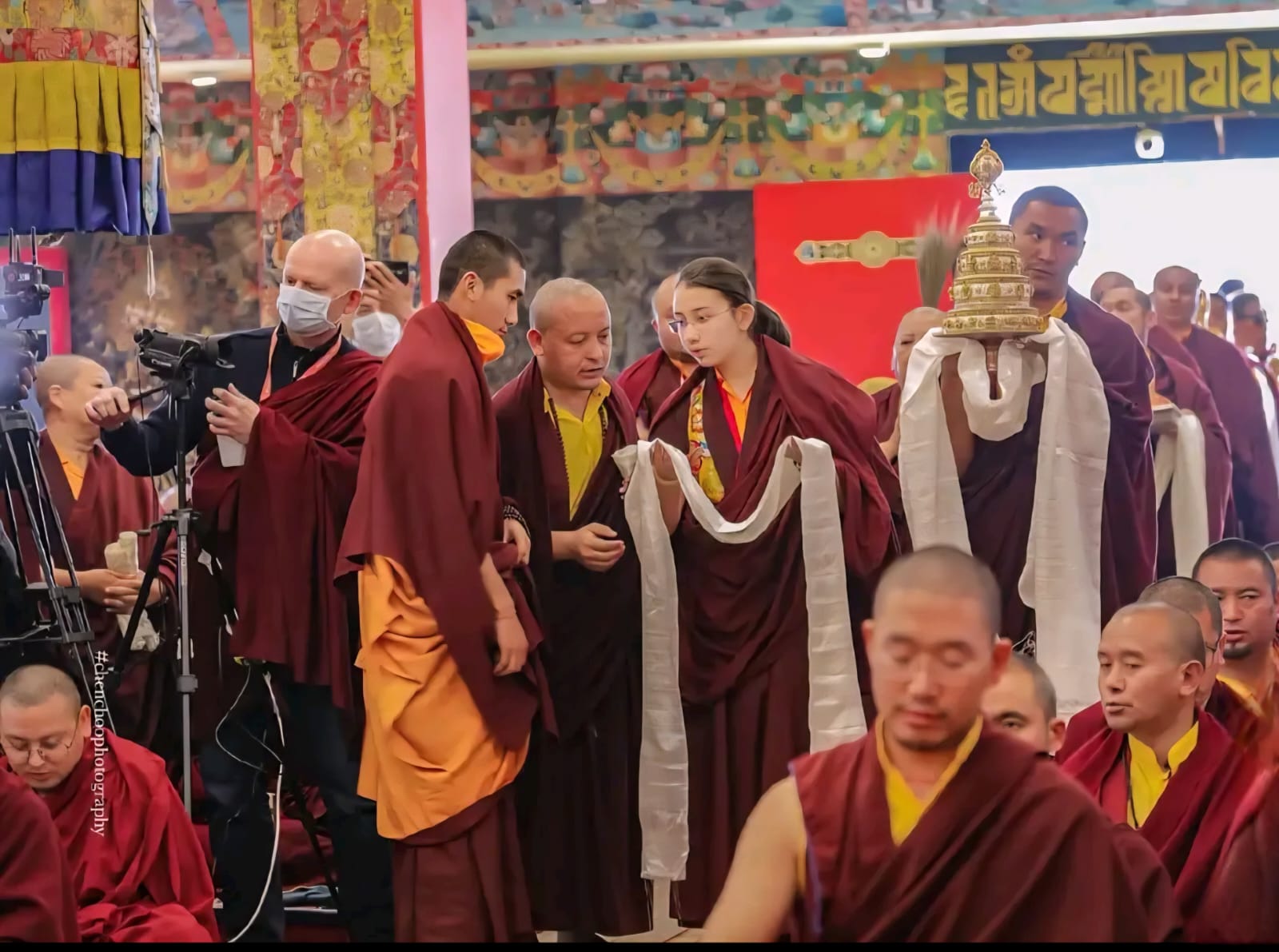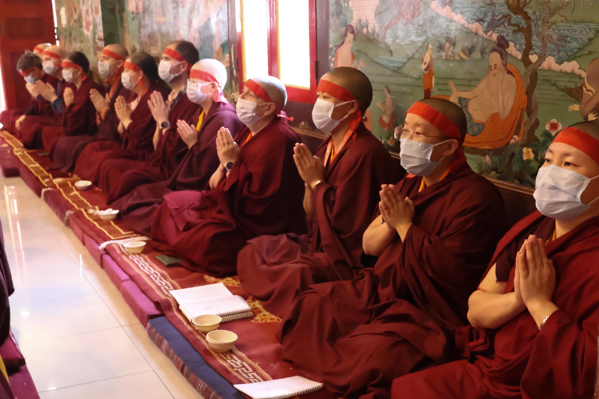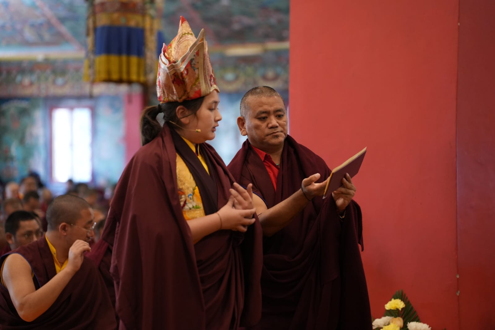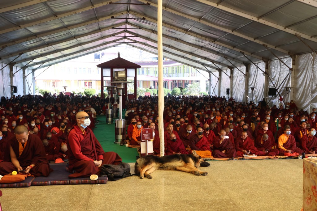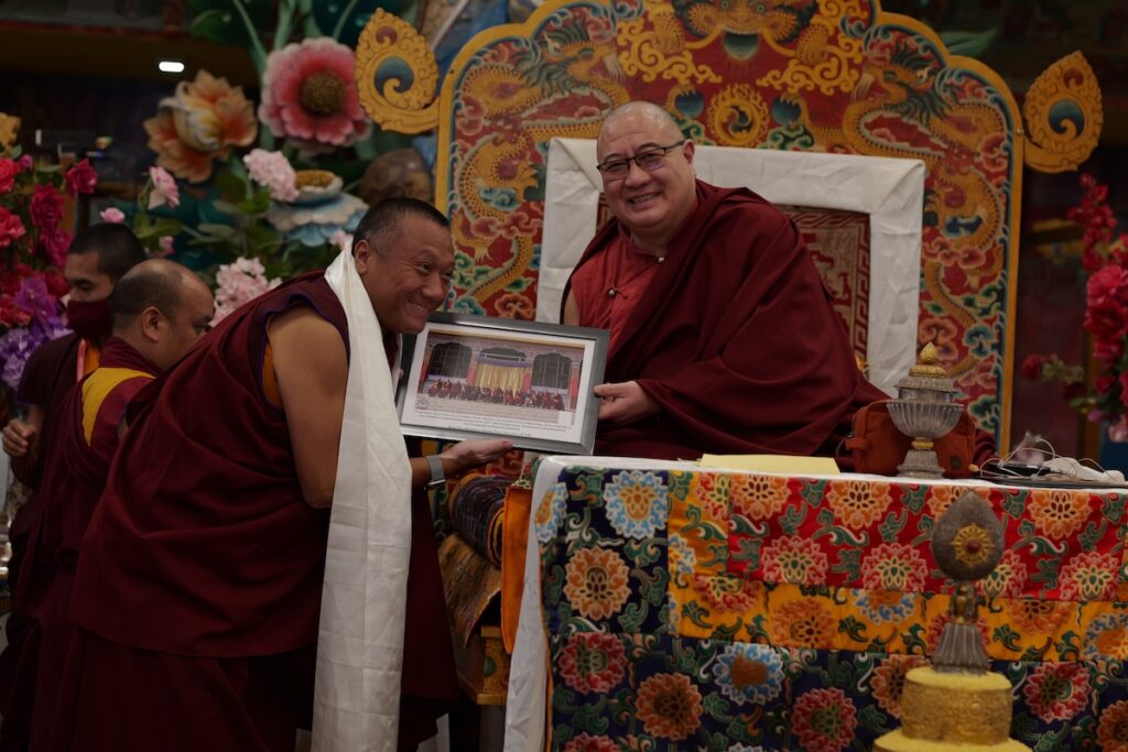 In the morning heartfelt gratitude was expressed to all those who made the transmissions possible, acknowledging the contribution of every individual – from the principal Mindrolling Administrators and Kama Organizers, to the teams of monks, nuns, and Western sangha, as well as all the staff members working hard in the kitchen, security, housekeeping, gardening, together with electricians, plumbers and carpenters. Special appreciation was also extended to the audio-visual team, whose dedicated efforts enabled the connection of spaces within the monastery and made several sessions accessible online to the worldwide sangha.