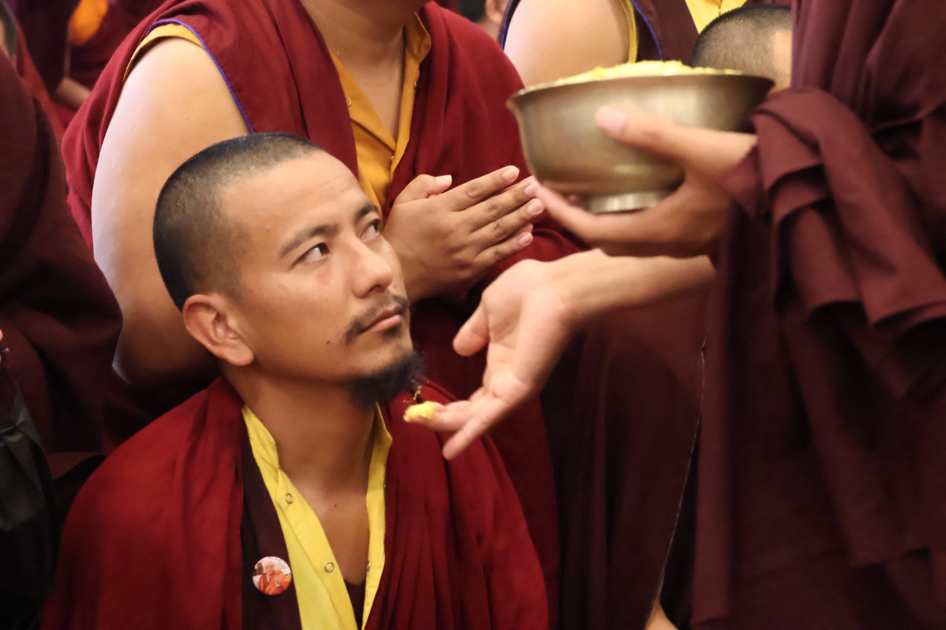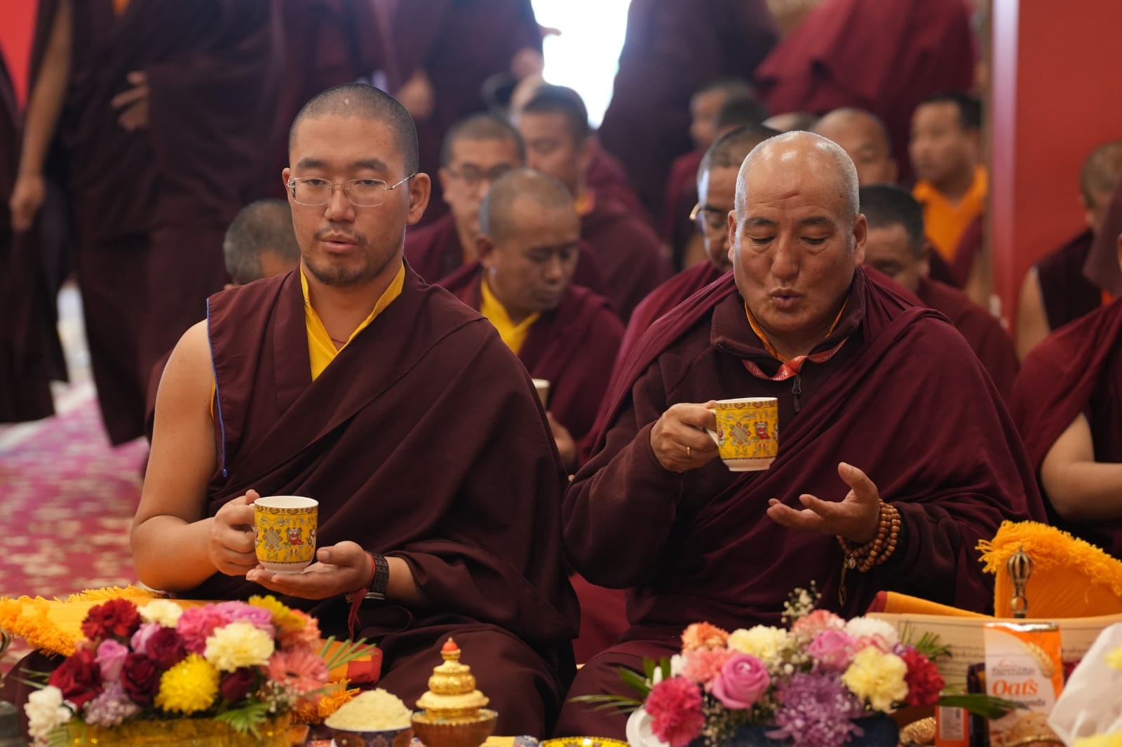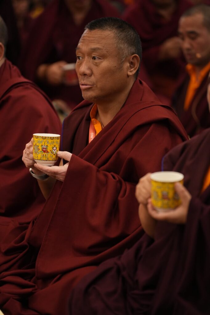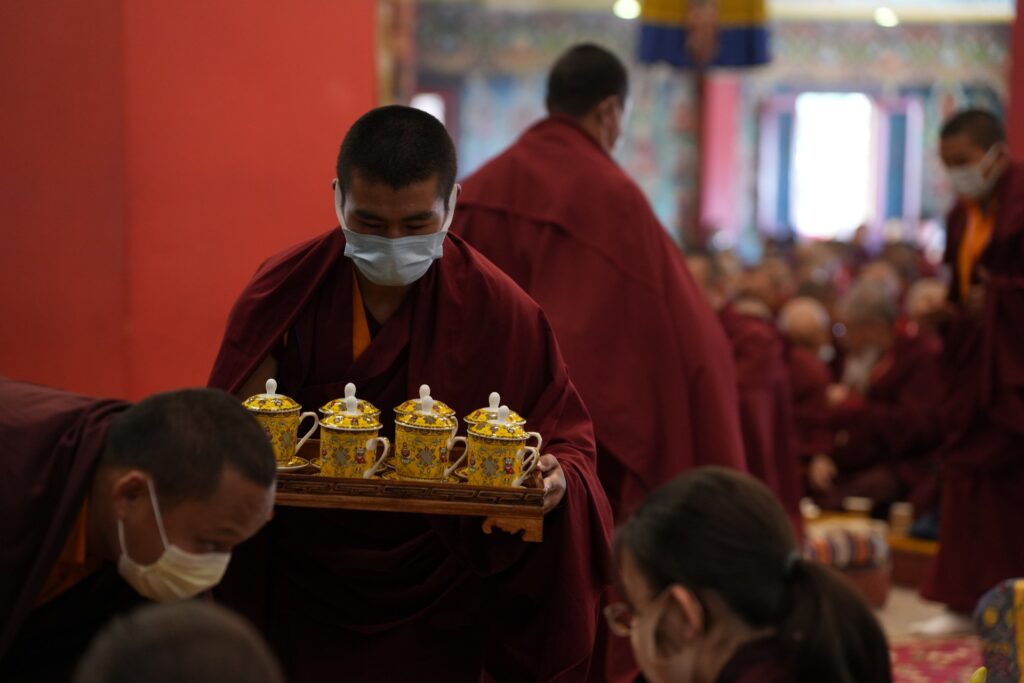 Such a calm and settled environment for the transmissions was sustained by the selfless service of many. The monks of Mindrolling began their work at dawn and continued throughout the day, with quiet elegance serving the tea and refreshments to the gathered monastic and lay sangha.