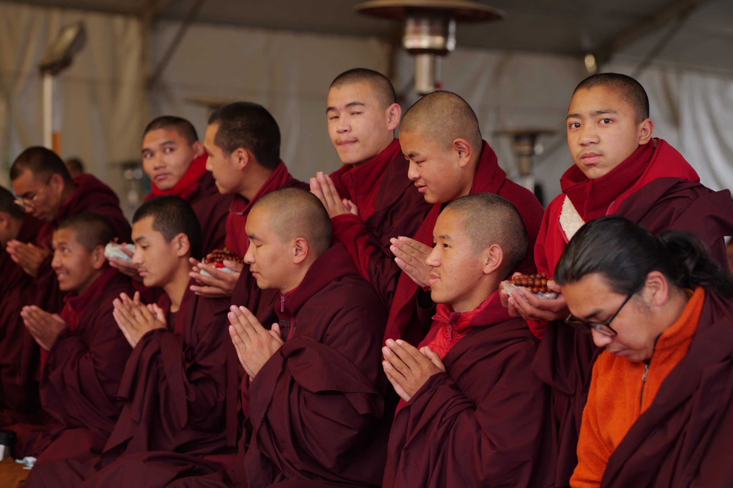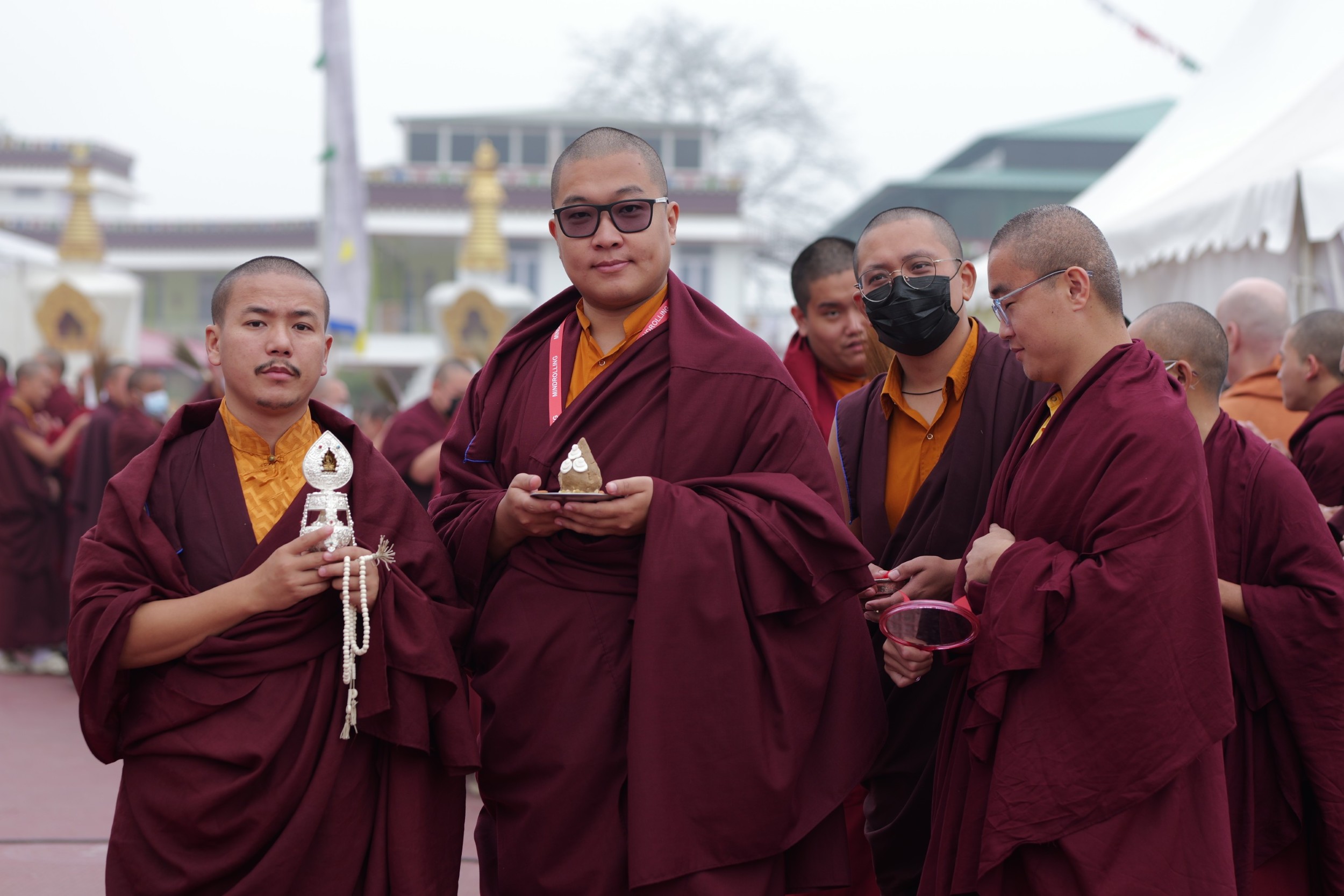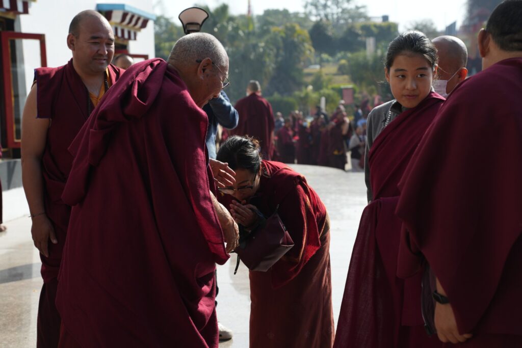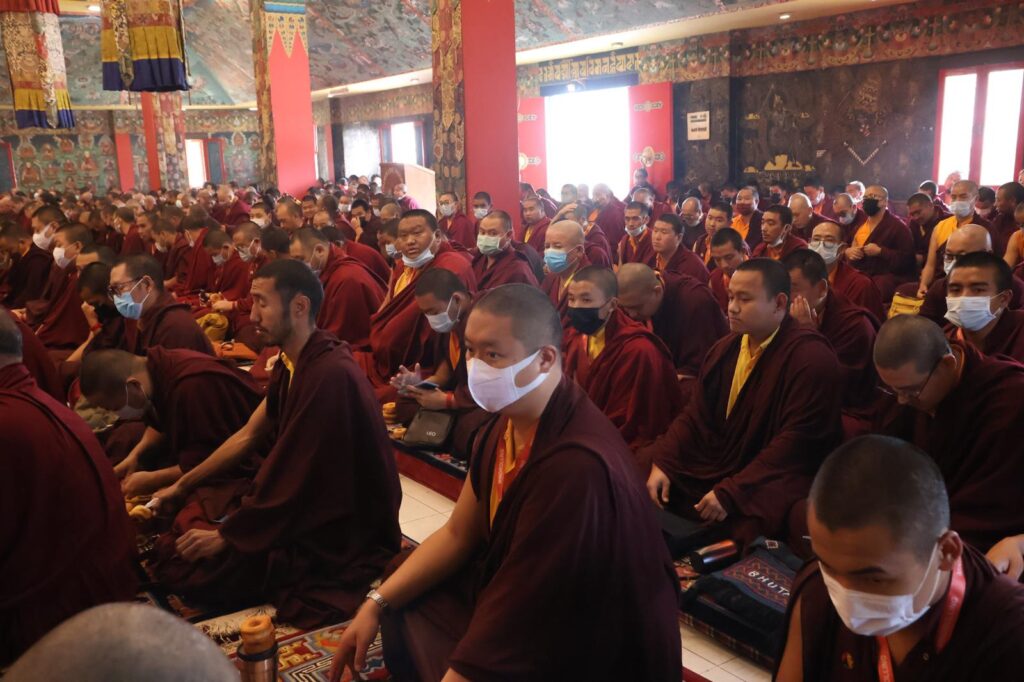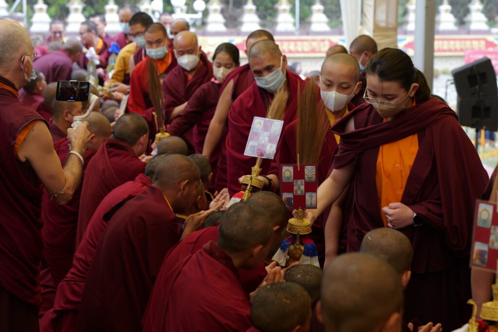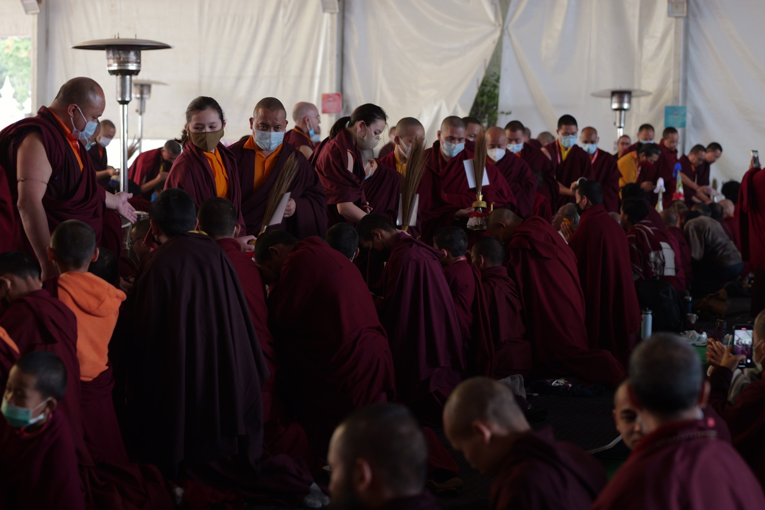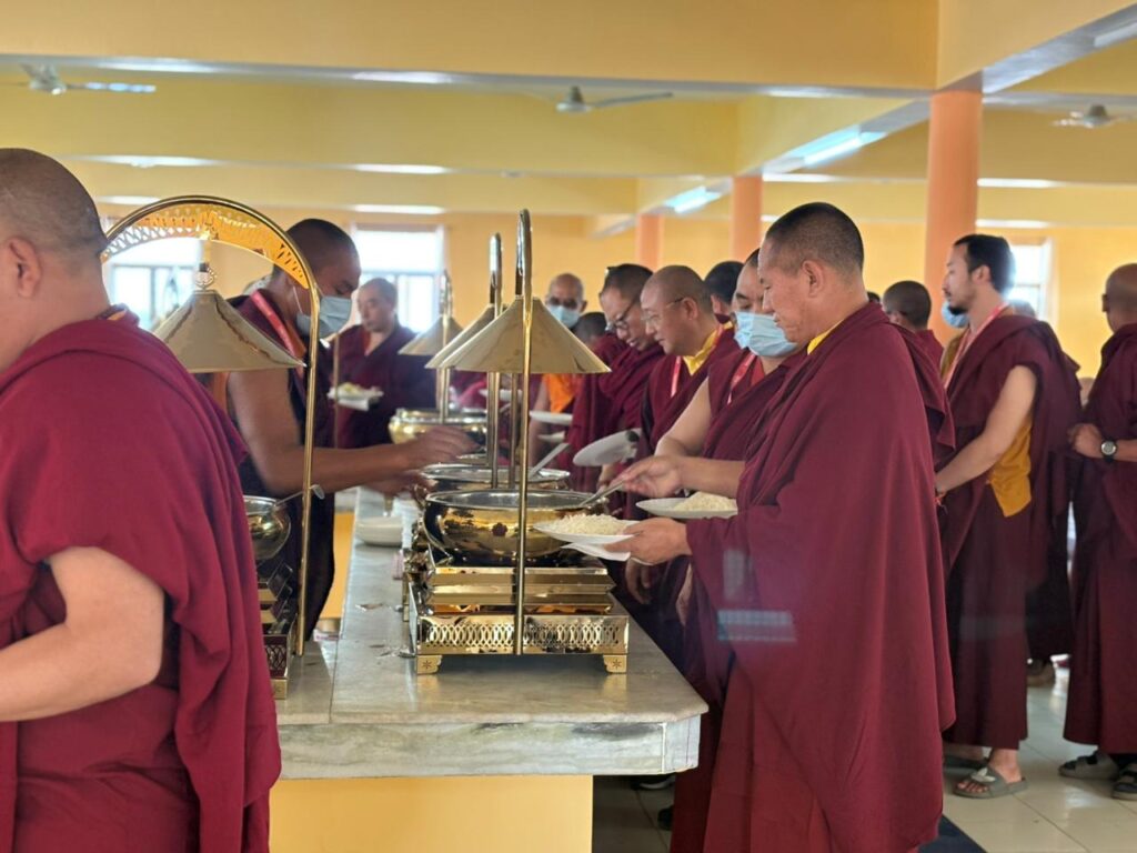The monastery premises went through extensive renovations and preparations to host the transmissions. The Great World Peace Stupa was renovated, and a tent to cover the thousands of gathered practitioners was erected. To host the thousands of dharma practitioners, the monastery rooms were made available for the incoming guests, any larger spaces were turned into dormitories; and the young monk’s school and sports hall were repurposed to serve as dining venues. With gentle ease and adaptability, the monks worked to transform every corner of the monastery to fulfill the needs of this extraordinary event and provide a warm, comfortable welcome to all the attendees.
