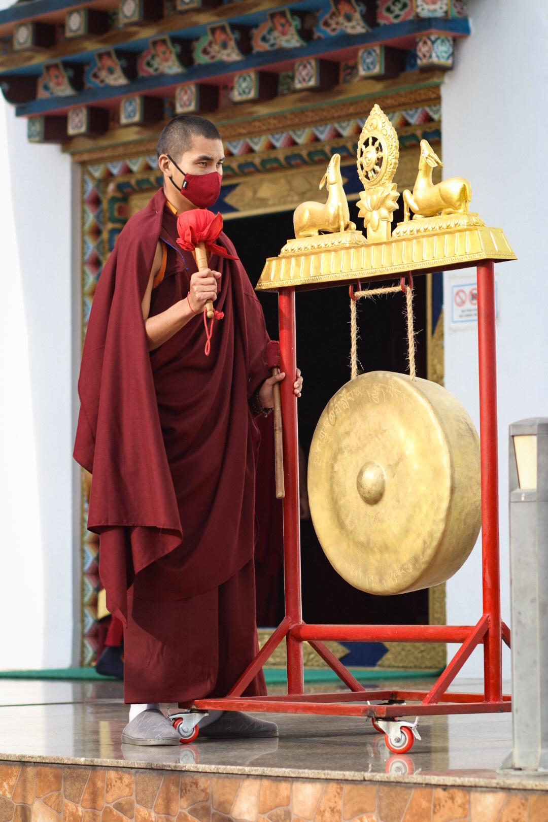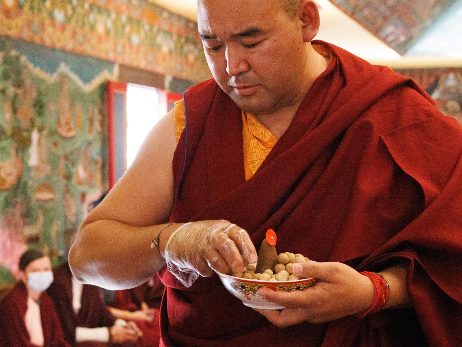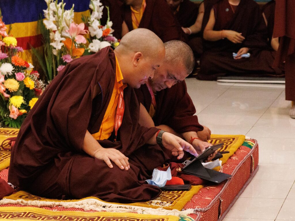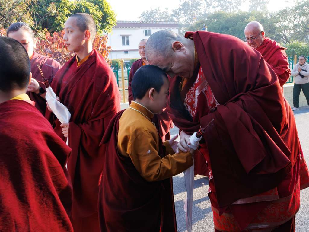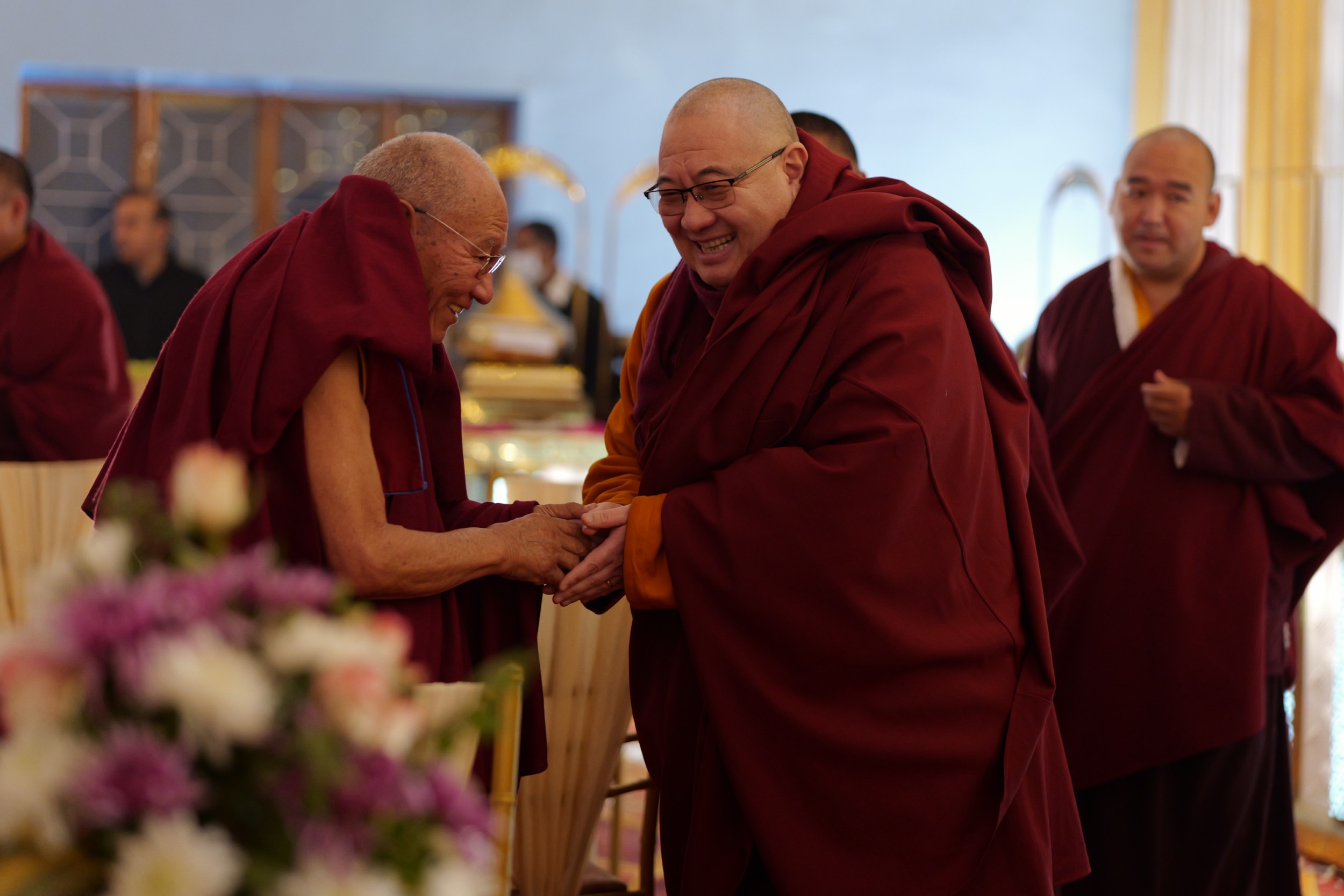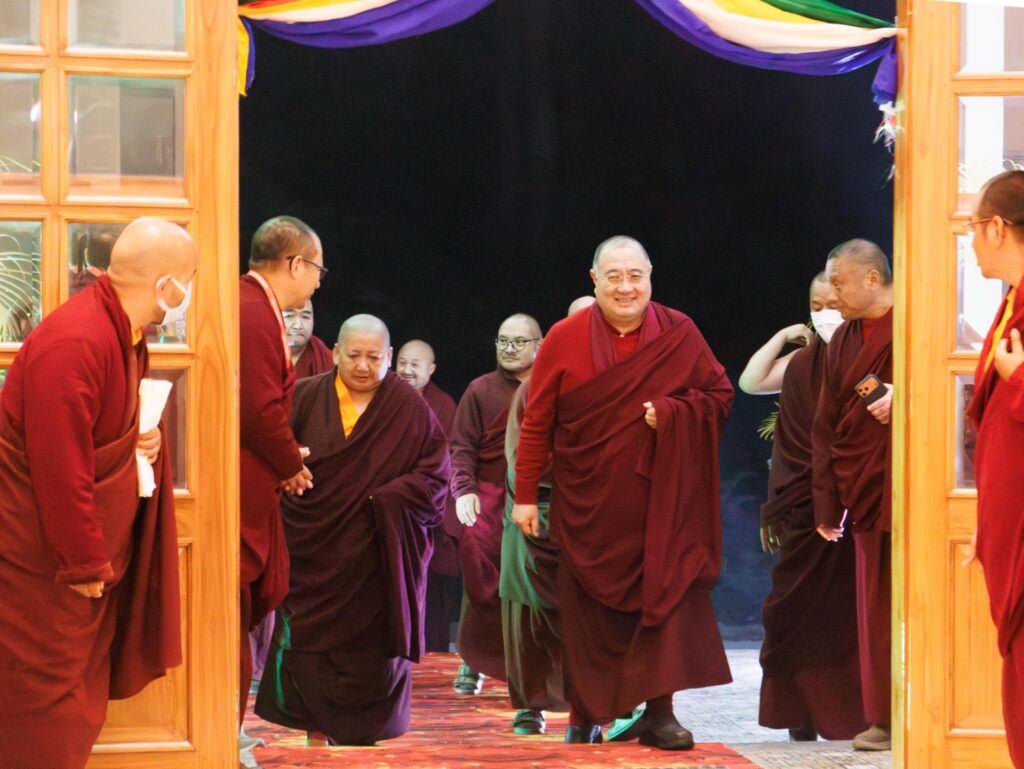 The monastery premises went through extensive renovations and preparations to host the transmissions. The Great World Peace Stupa was renovated, and a tent to cover the thousands of gathered practitioners was erected. To host the thousands of dharma practitioners, the monastery rooms were made available for the incoming guests, any larger spaces were turned into dormitories; and the young monk’s school and sports hall were repurposed to serve as dining venues. With gentle ease and adaptability, the monks worked to transform every corner of the monastery to fulfill the needs of this extraordinary event and provide a warm, comfortable welcome to all the attendees.