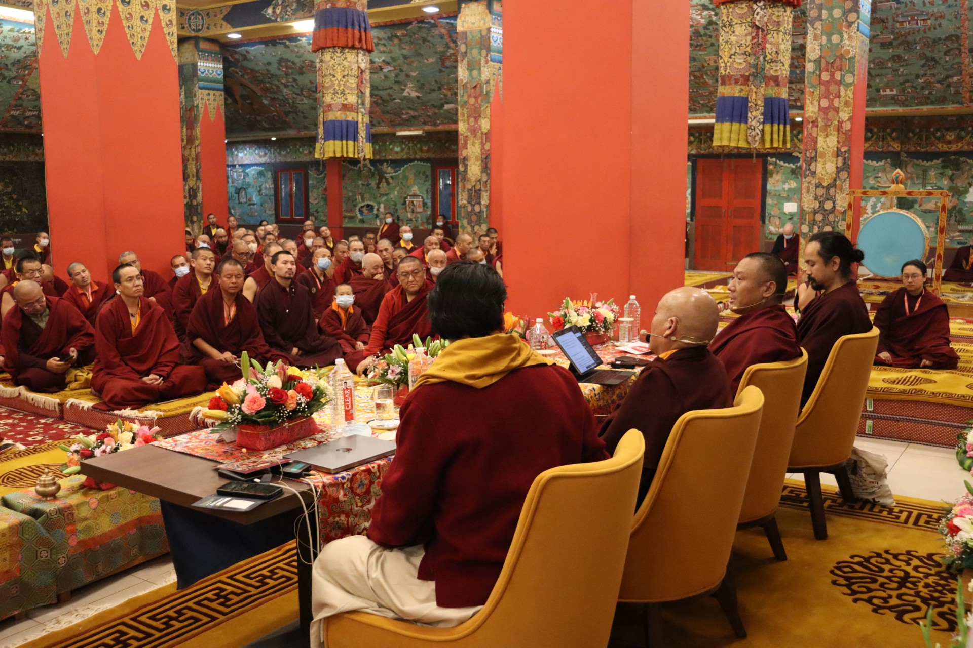 In order to support understanding and recognition of the immense value of these extraordinary empowerments and oral transmissions, accomplished masters and scholars held Symposia, in the evenings on the 11th of December, and on the 3rd and 4th of January respectiviely. During these symposiums the history and significance of the Kama Transmissions were explored and discussed, making the subject accessible to the gathered Rinpoches, tulkus, monastics, and ngagkpas.
