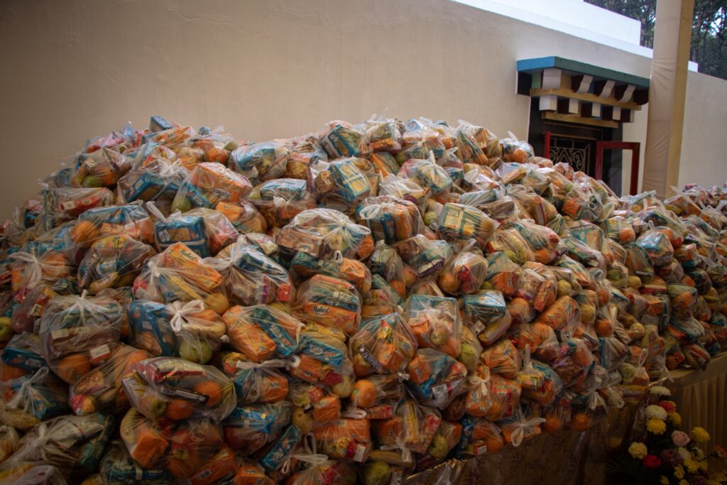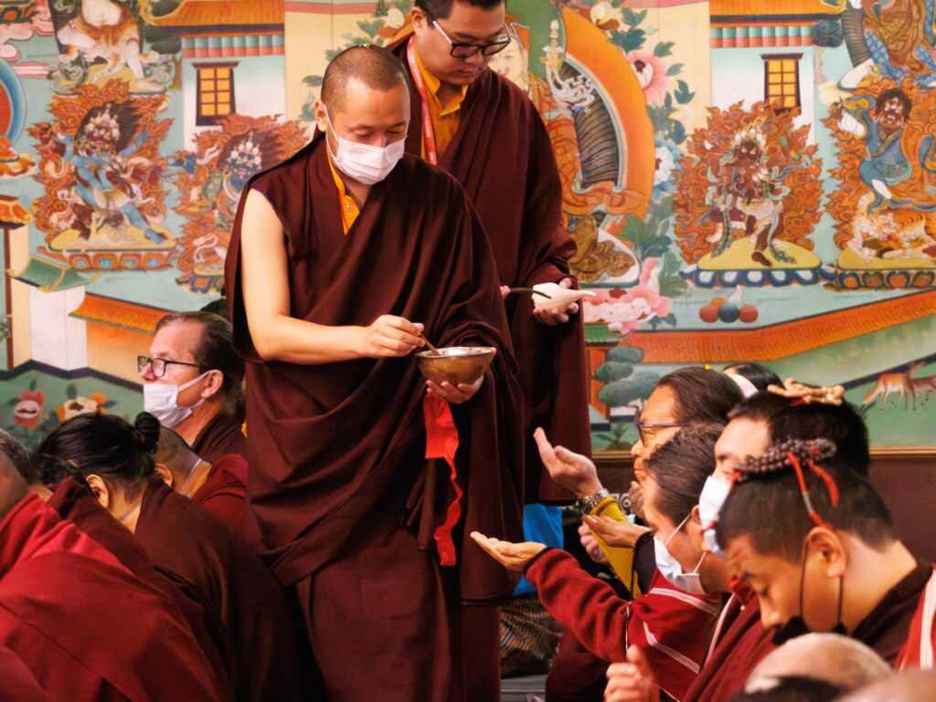 To allow the assembled sangha to participate in the transmissions free of concern for daily sustenance, three nutritious meals were offered each day to more than three thousands attendees.