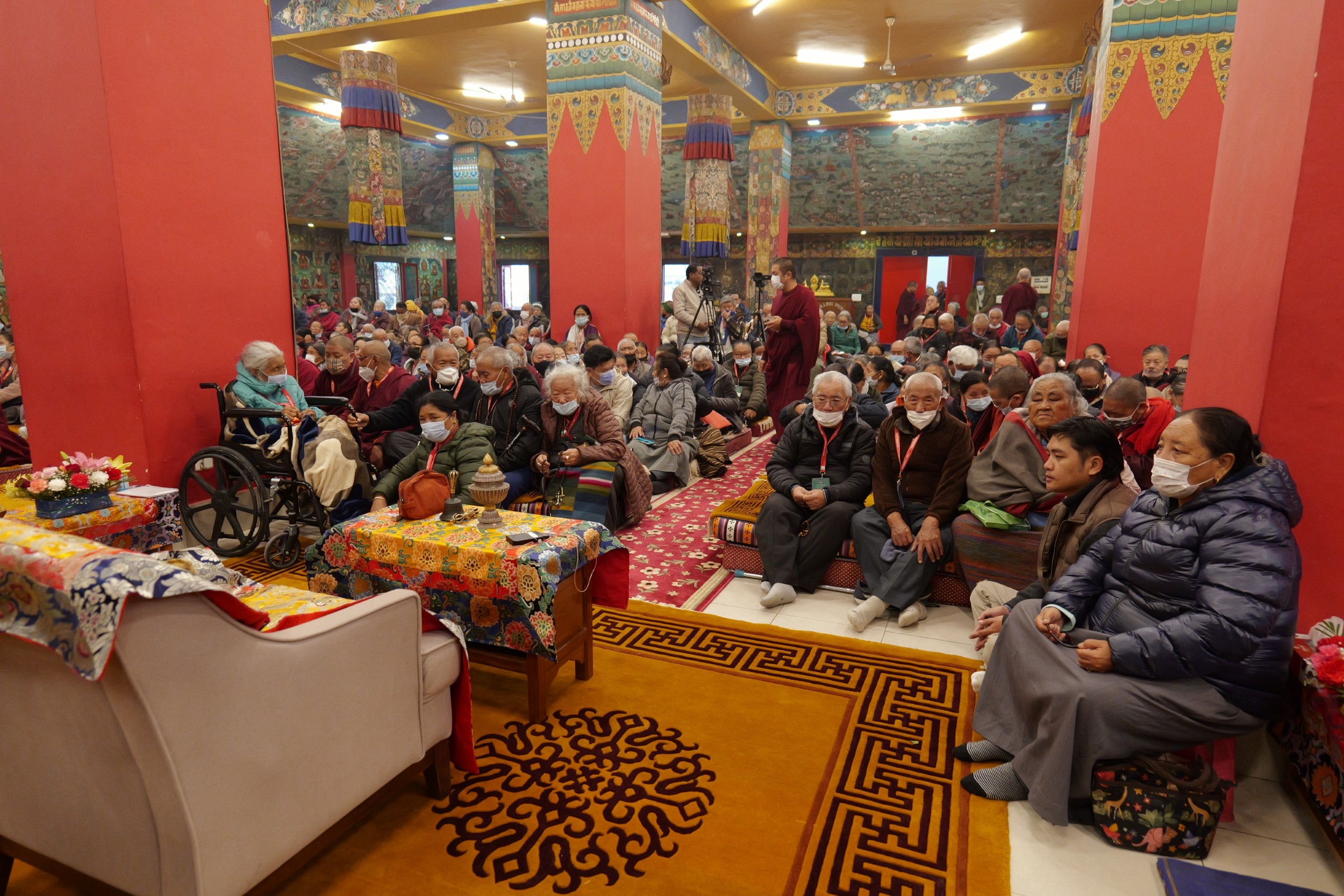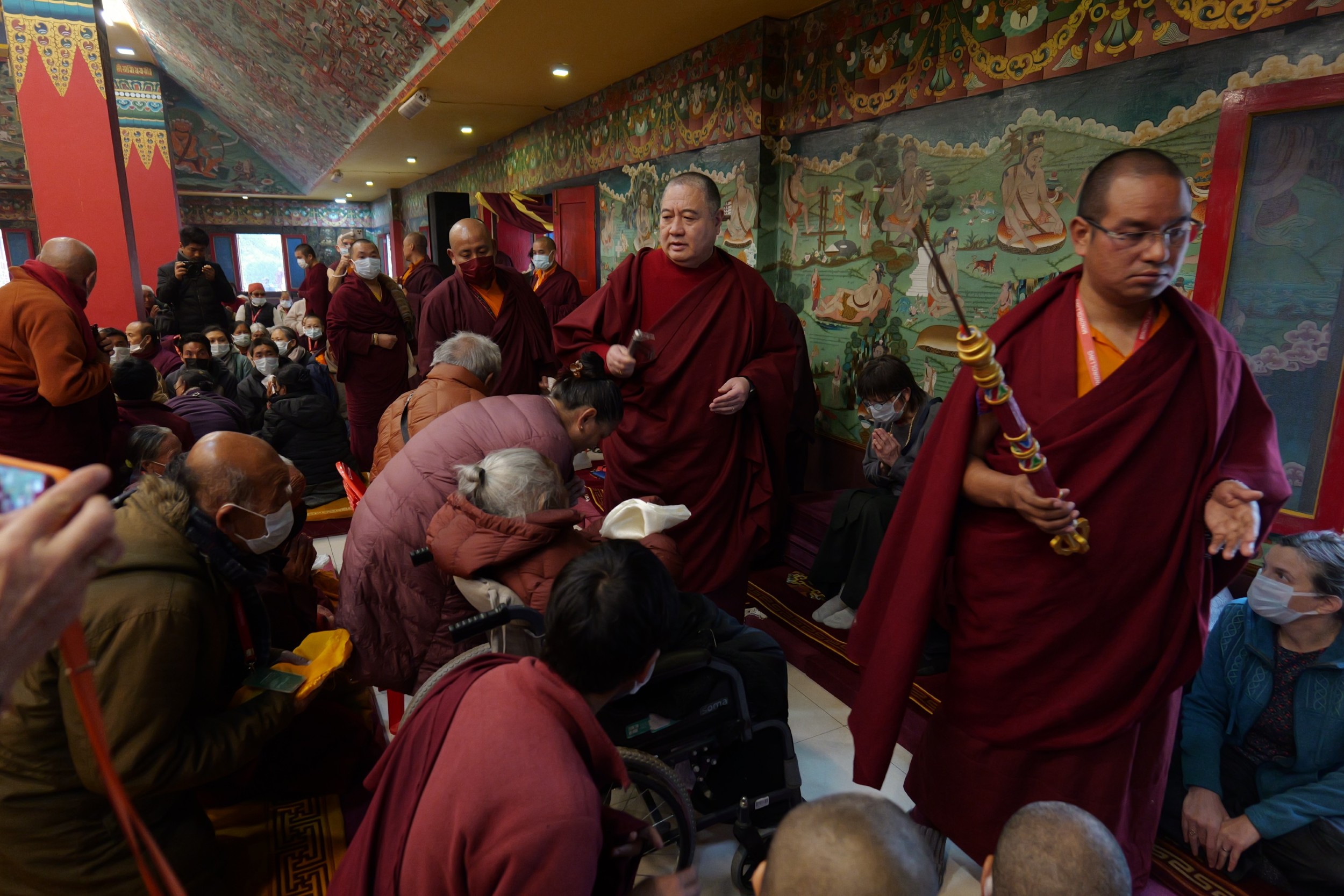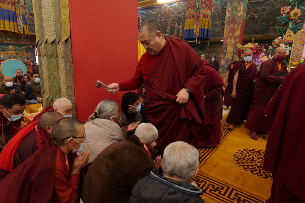 At the request of Minling Jetsün Khandro Rinpoche, Kyabje Shechen Rabjam Rinpoche most graciously agreed to bestow a special blessing for the elders of the Tibetan community. With loving kindness and care, Kyabje Rinpoche personally blessed each of the devoted elders gathered in the stupa shrine room on the 31st of December.