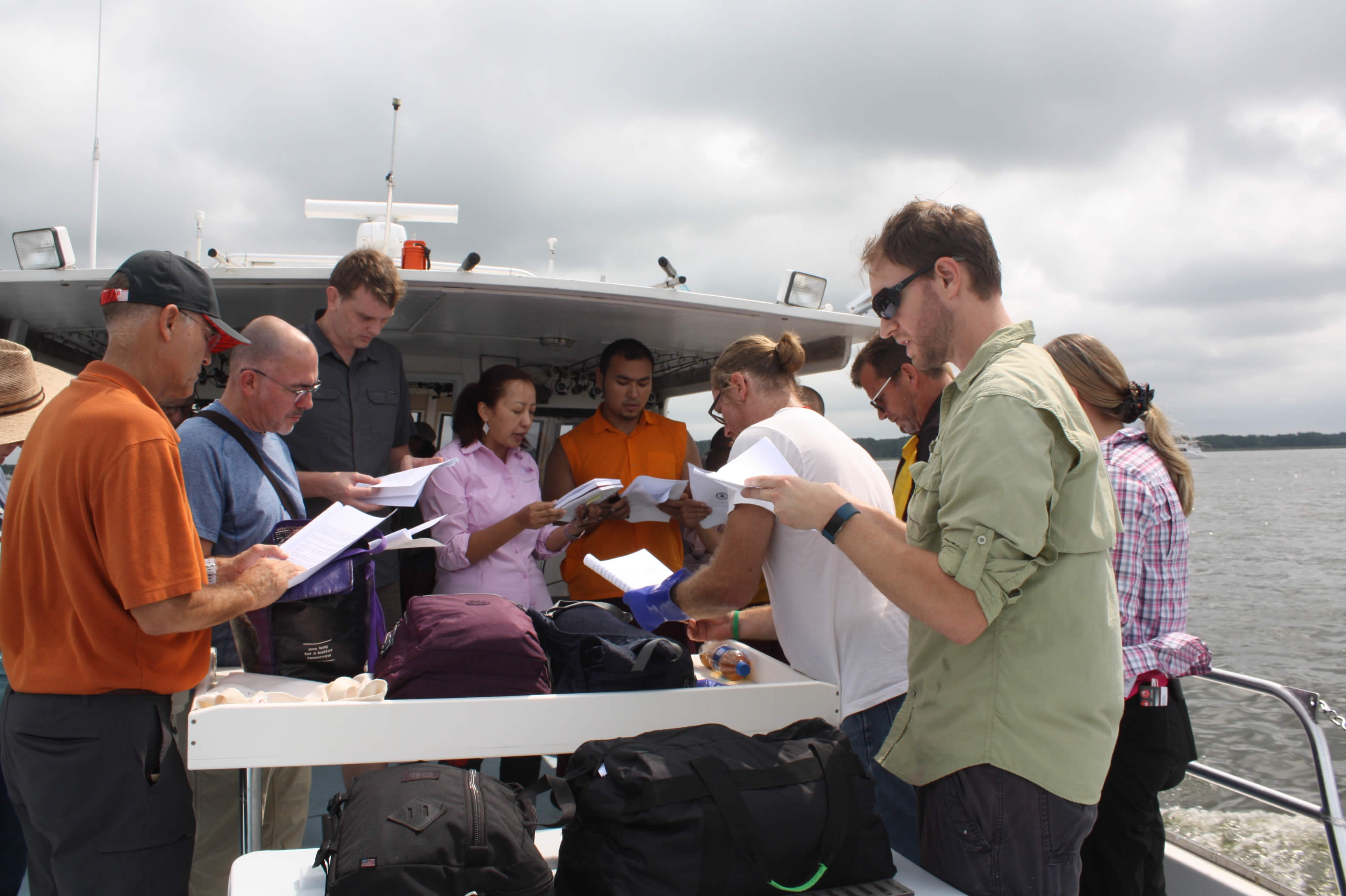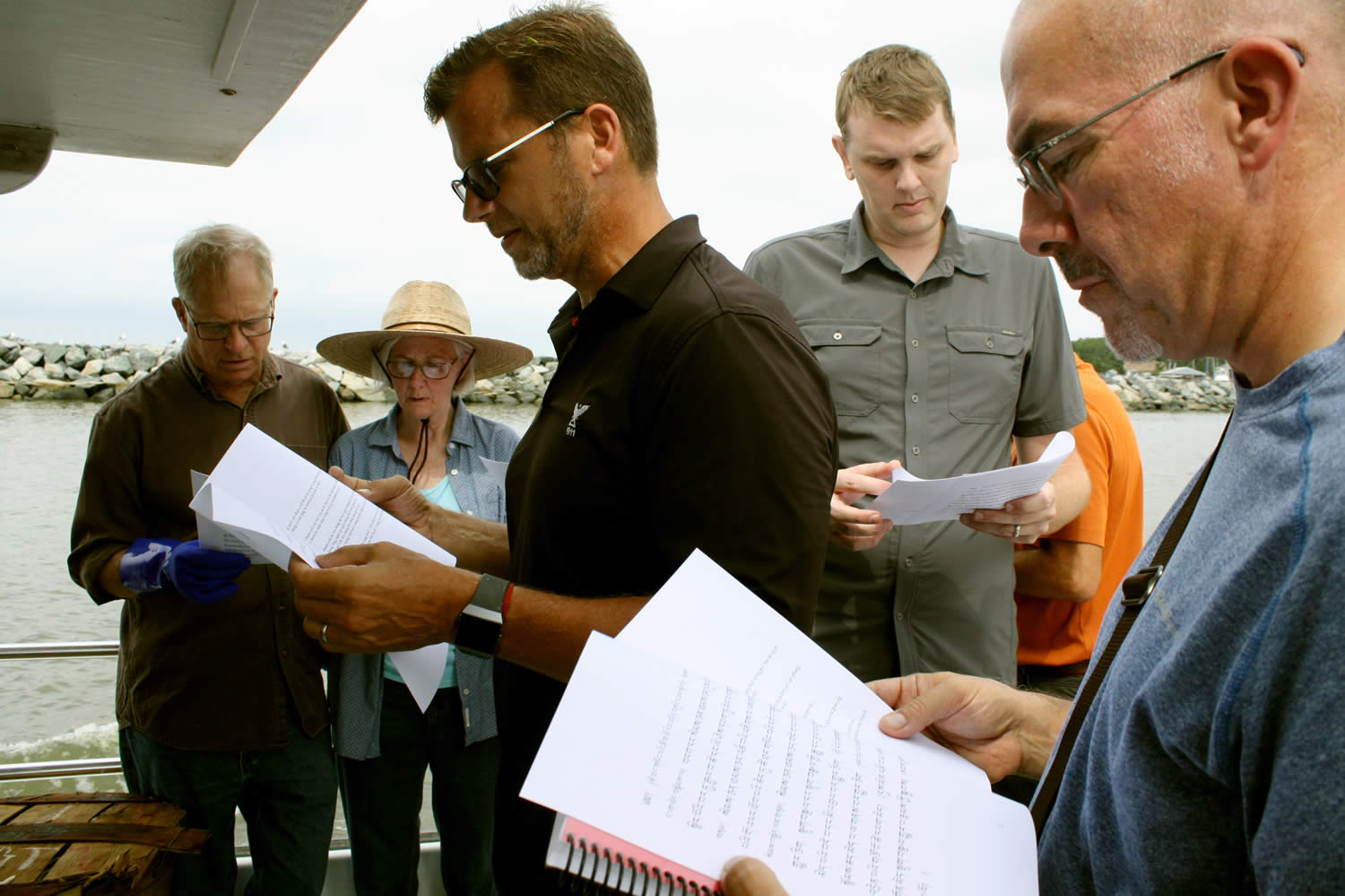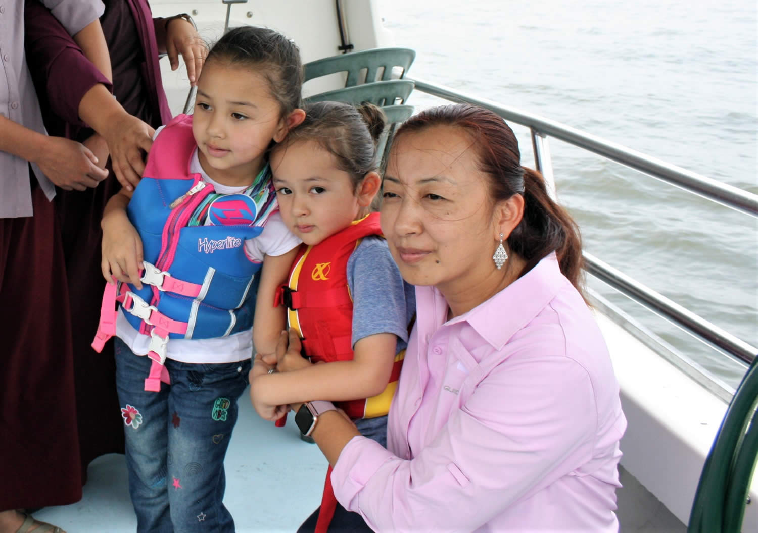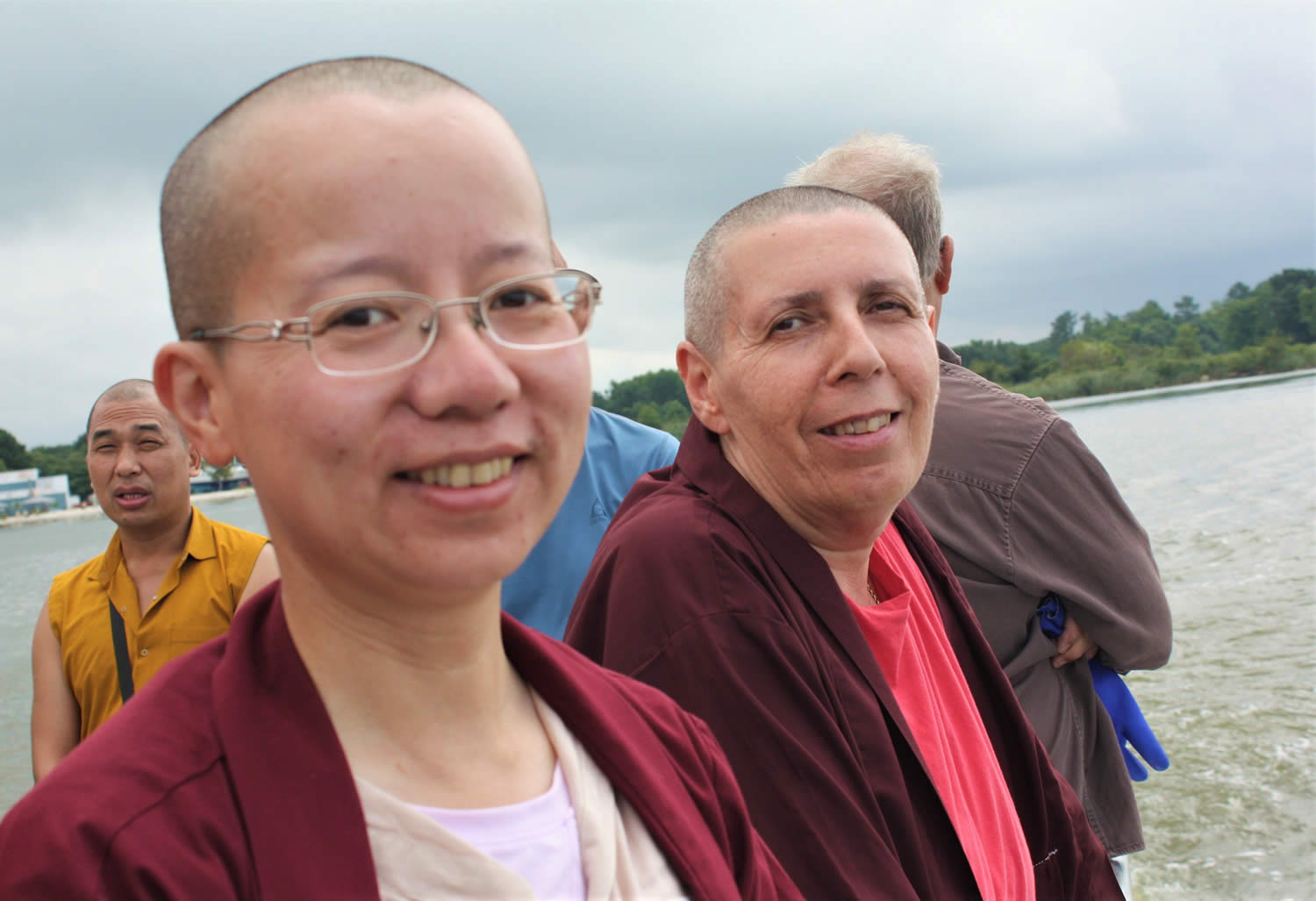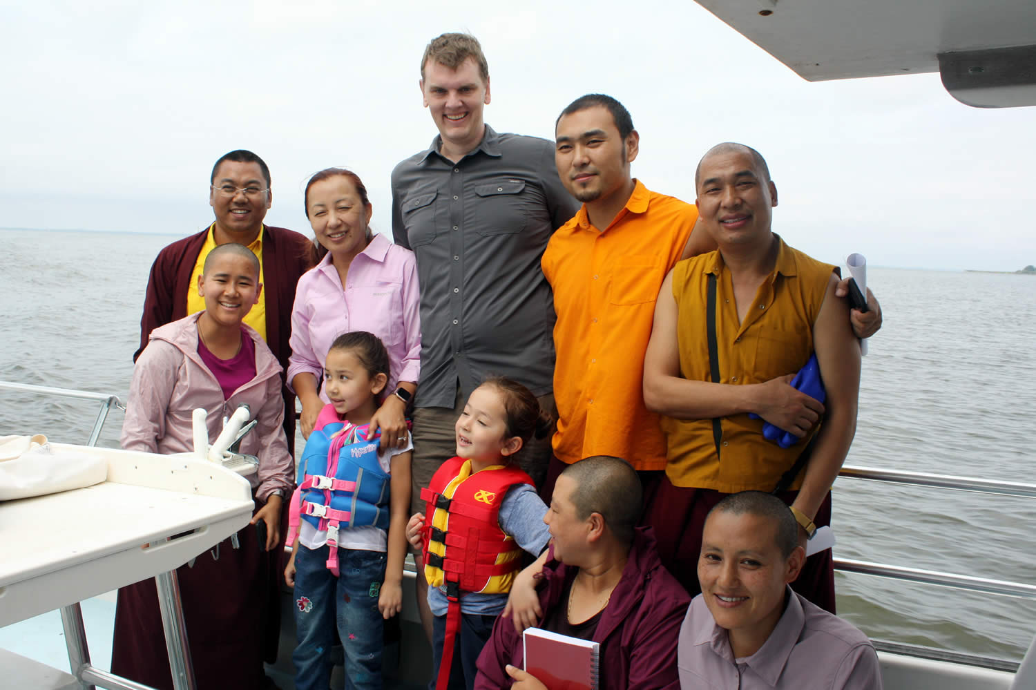 Many thousands of crabs were released by Her Eminence Jetsün Dechen Paldrön, Dungse Rinpoche, Jetsün Rinpoche, Ven. Choktrul Ngawang Jigdral Rinpoche, Ven. Khenpo Namdrol Gyatso, Ven. Lopön Thrinley Gyaltsen and Kunda Britton Bosarge la who were joined by staff and sangha members. Prayers for Life Release and the Long-Life Supplication to Jetsün Khandro Rinpoche were recited on board the boat, led by Ven. Choktrul Ngawang Jigdral Rinpoche, chief Umdze of Mindrolling Monastery. Each bushel of crabs was blessed and marked with symbols to protect them from being recaptured. The tsethar ceremony concluded in a nearby park where everyone gathered to recite aspirations.
