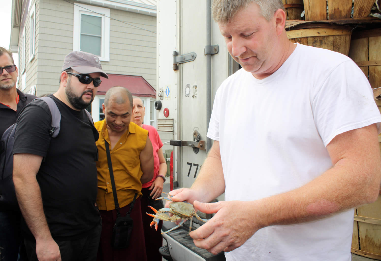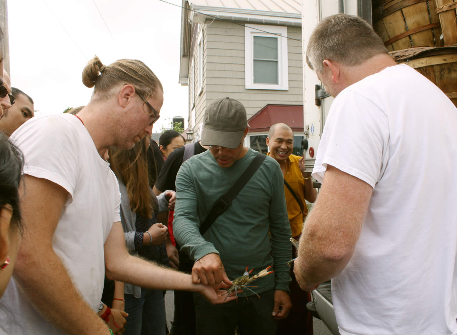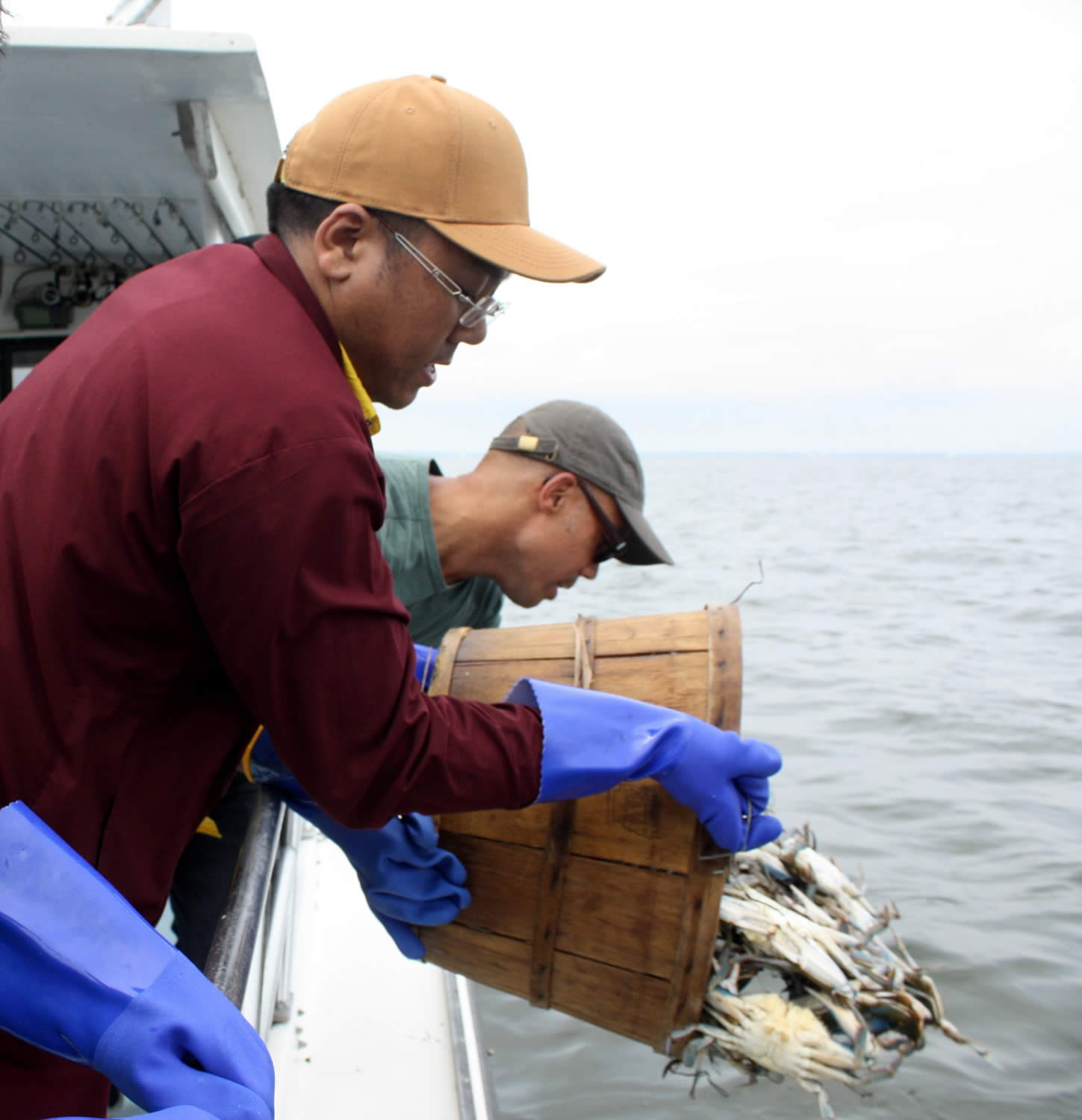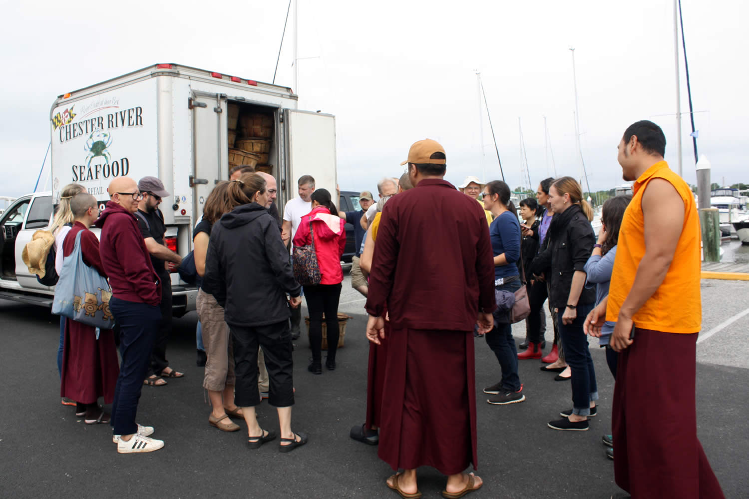 Sangha members wholeheartedly offered donations for the purchase more than 100 bushels of beautiful blue crabs from a local crab fishing business and to rent the boat which would carry the crabs to freedom. Each bushel contained over a hundred crabs which had been previously caught and refrigerated, and were now headed back to the waters from which they had come.