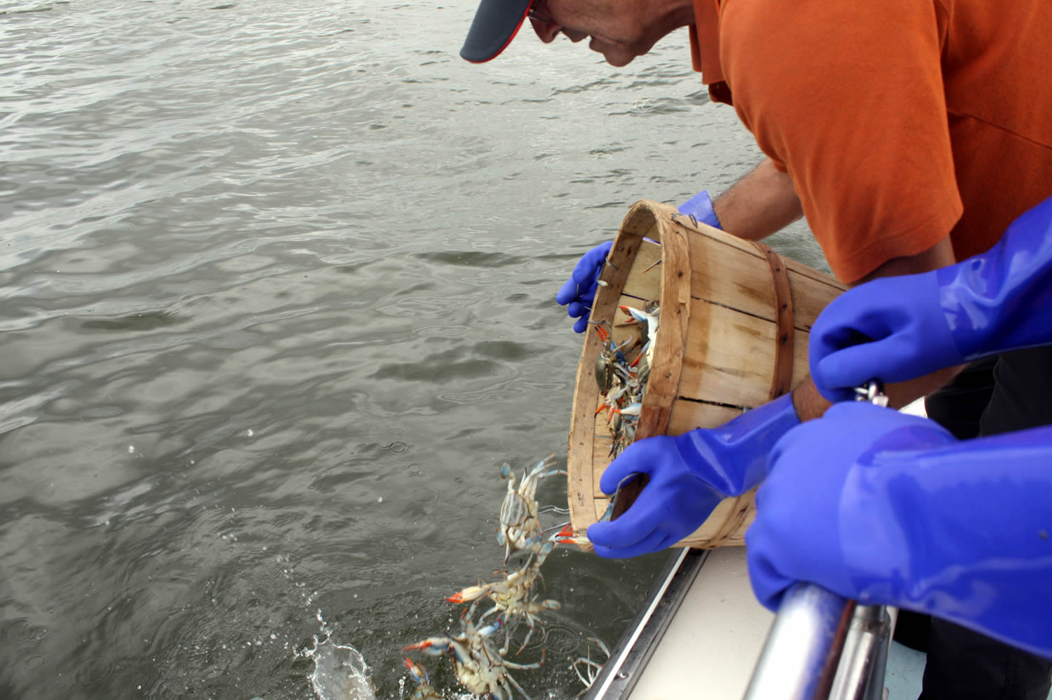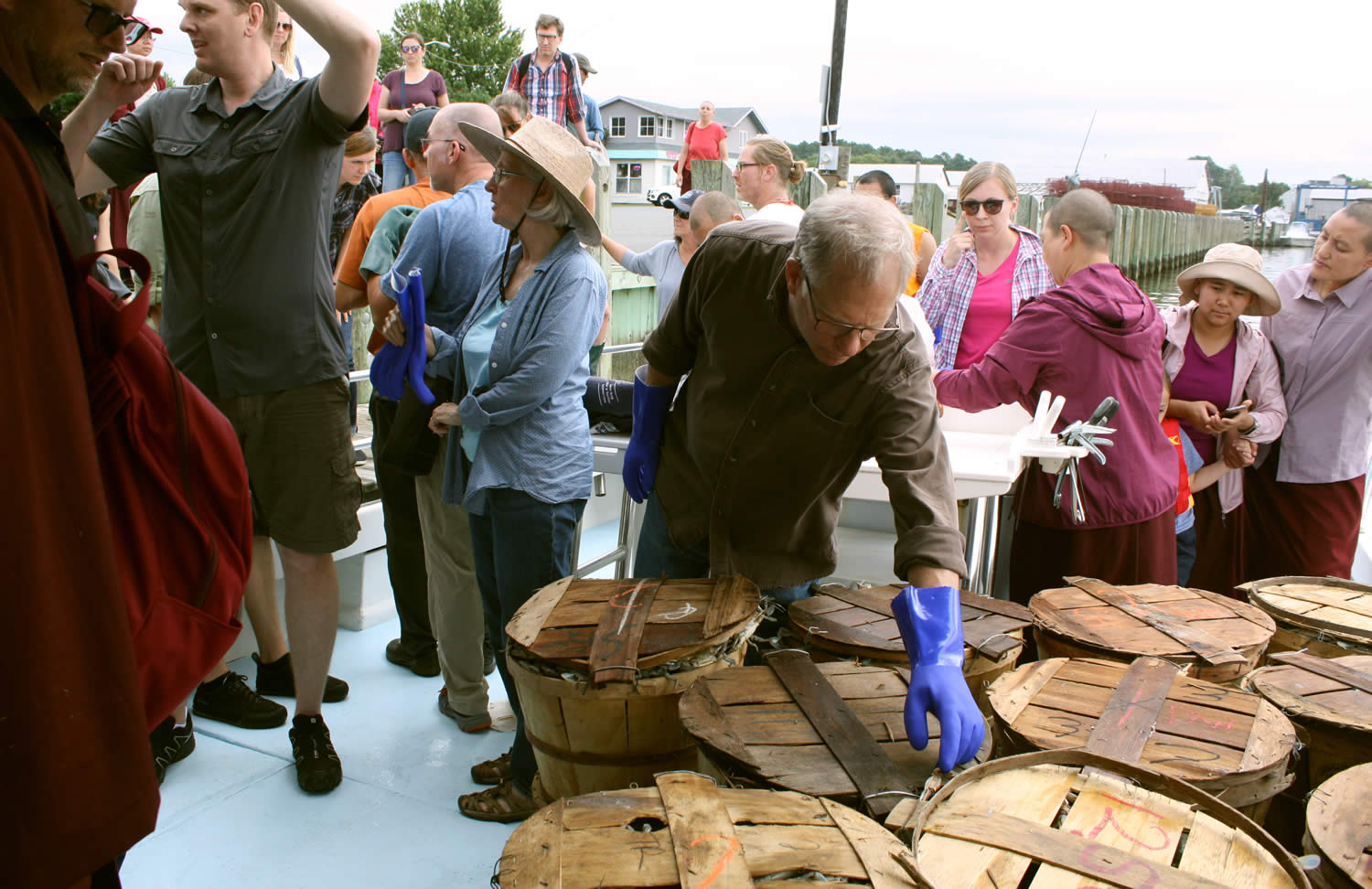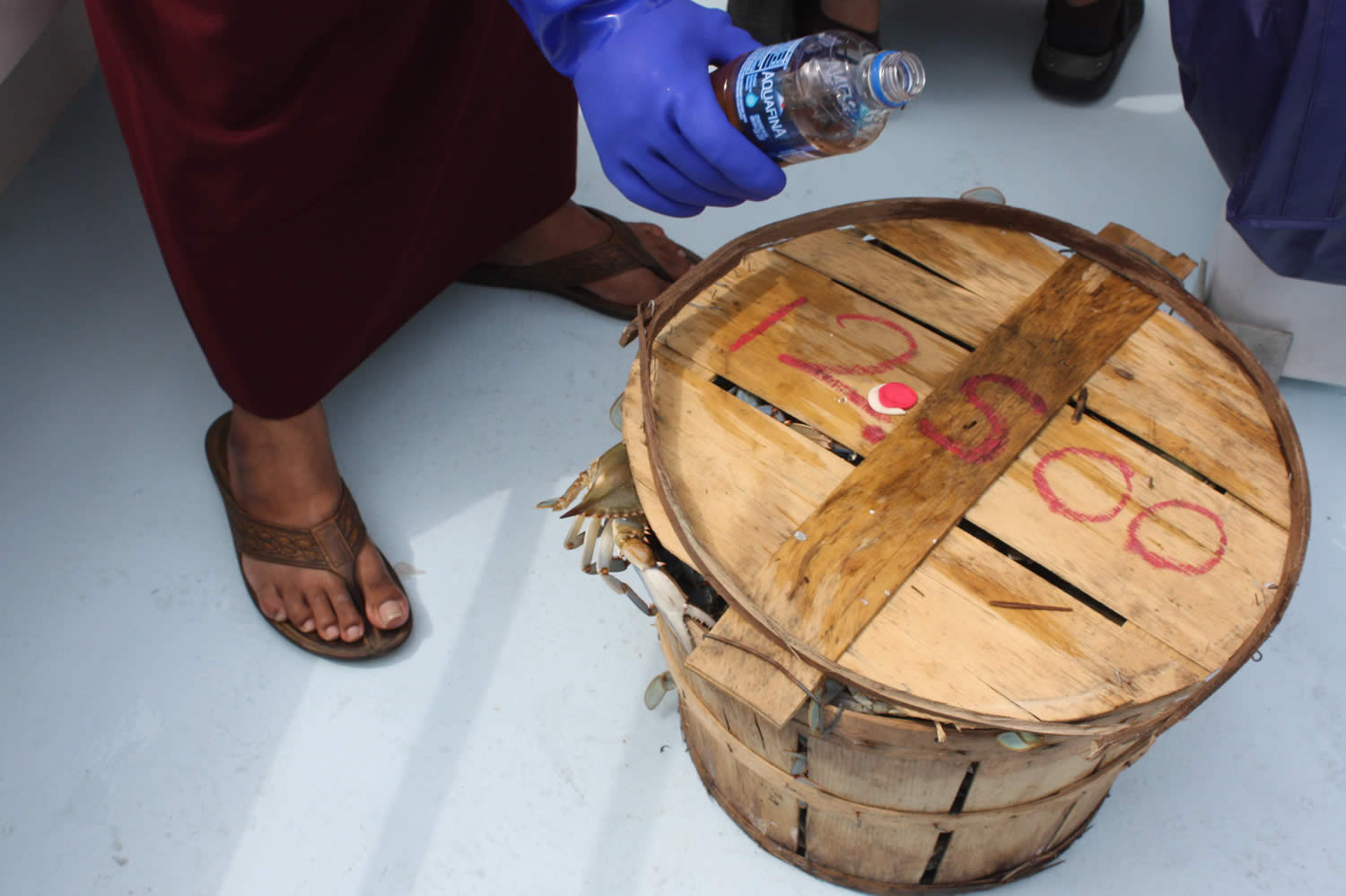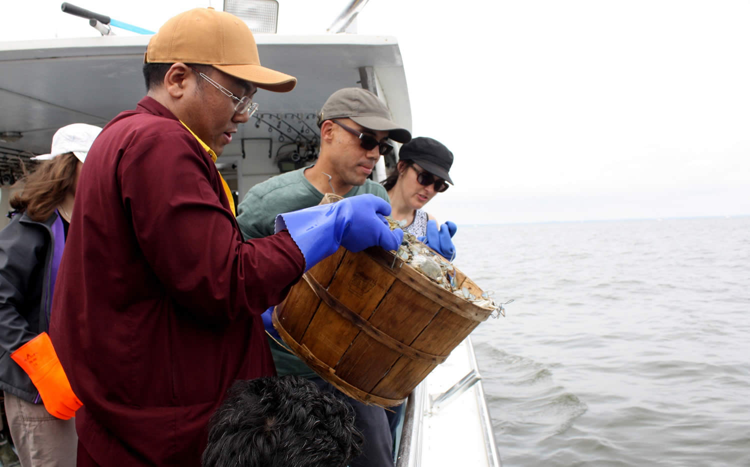 Sangha members wholeheartedly offered donations for the purchase more than 100 bushels of beautiful blue crabs from a local crab fishing business and to rent the boat which would carry the crabs to freedom. Each bushel contained over a hundred crabs which had been previously caught and refrigerated, and were now headed back to the waters from which they had come.