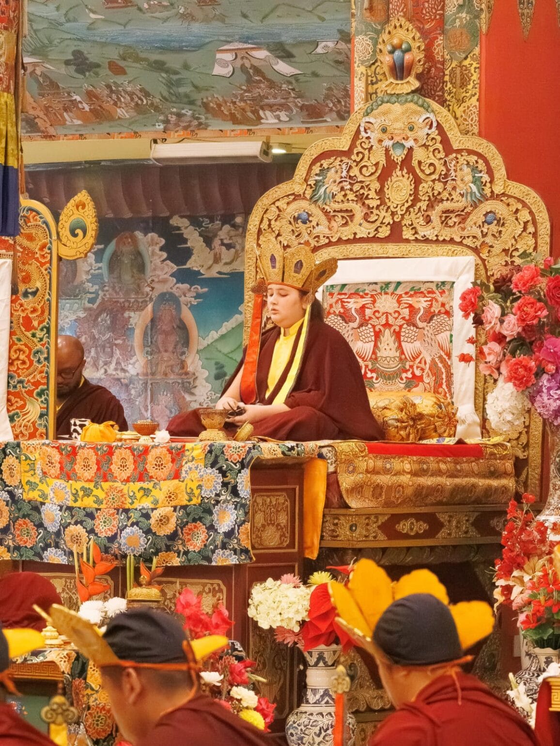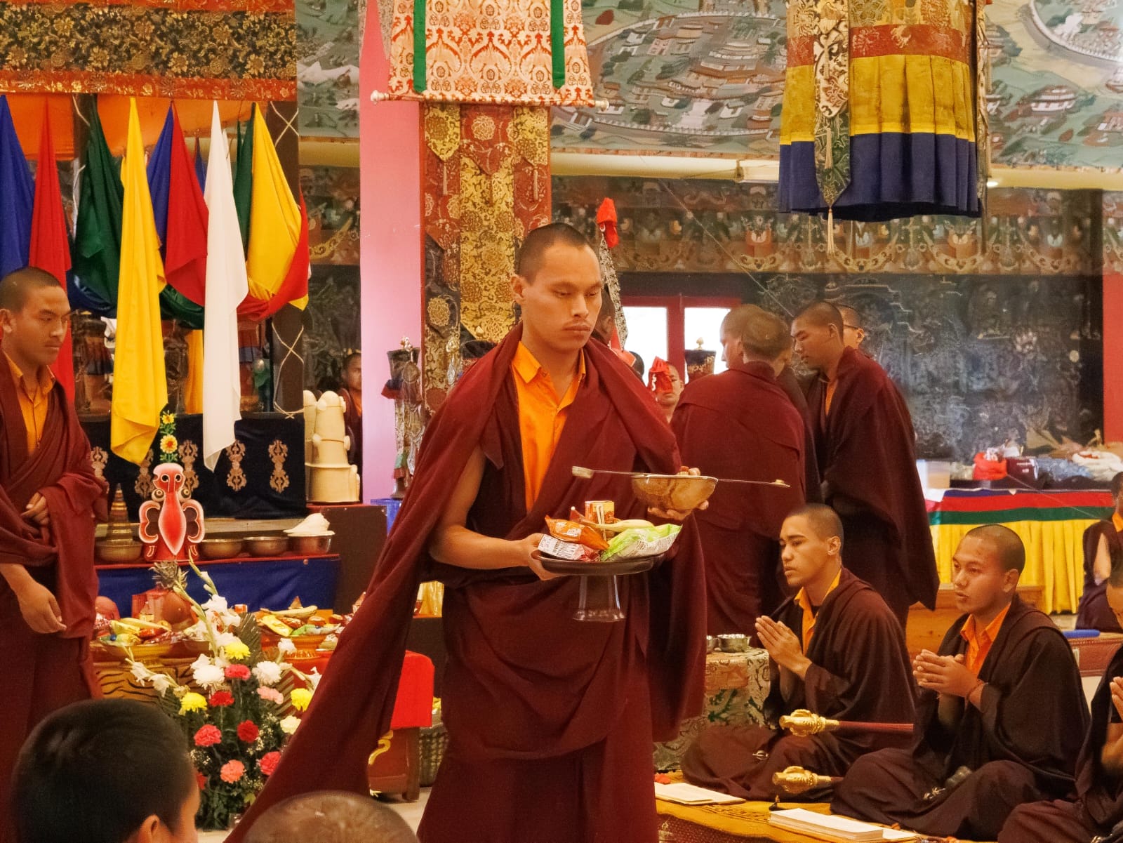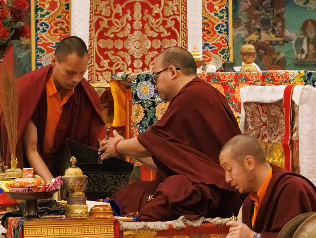 The blessings of the lineage were palpable as this year’s practice was presided over by Kyabje Minling Dungse Rinpoche, the 13th throne holder of Mindrolling who took his seat on the throne and led the gathered assembly during the intensive days of practice. This most fortunate occasion was blessed with presence of the Kyabje Minling Jetsün Rinpoche, Kyabje Minling Jetsün Khandro Rinpoche, Kyabje Trulshig Yangsi Rinpoche, the Dorje Lopön Khentrul Marpa Rinpoche, Minling Umdze Lodroe Gyaltsen, along with many rinpoches, tulkus, khenpos, and monks, nuns and lay practitioners from all around the world.