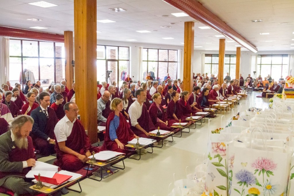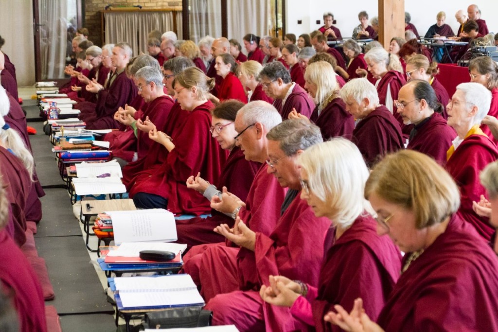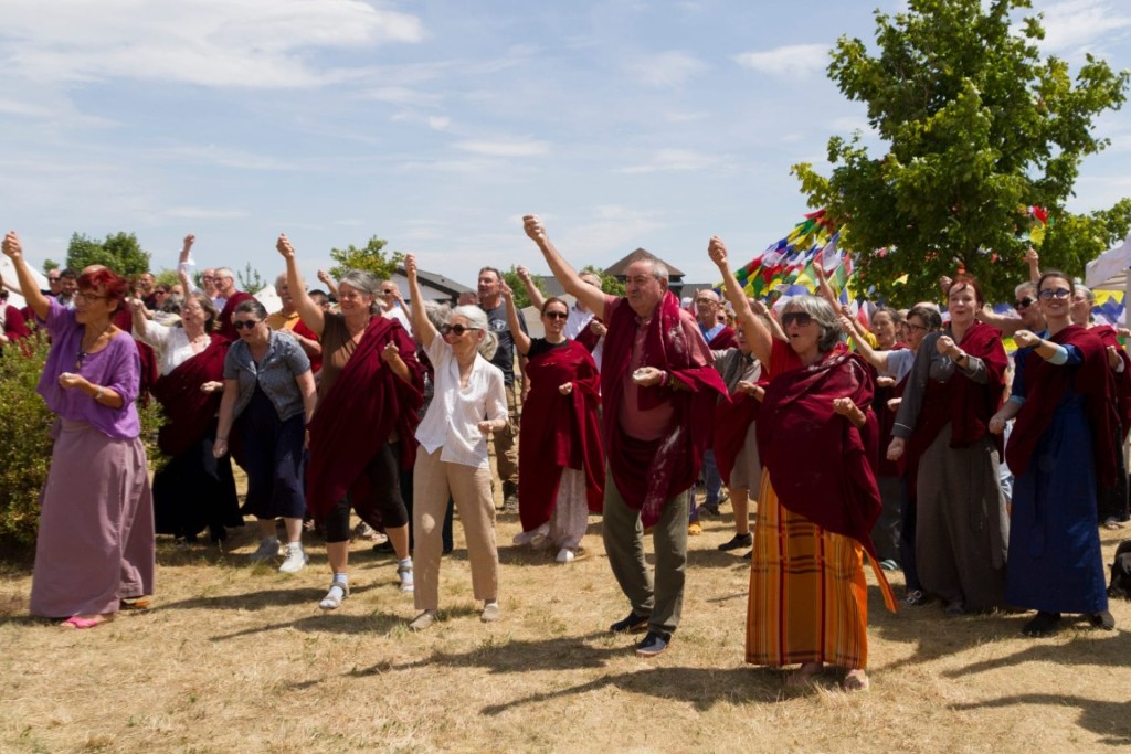 Having received such teachings and engaged in the practices with fellow sangha members, all expressed their immense gratitude to our precious guru who tirelessly accomplishes every benefit for all beings. The assembly concluded the retreat by making vast offerings of mandala and body, speech, and mind.
