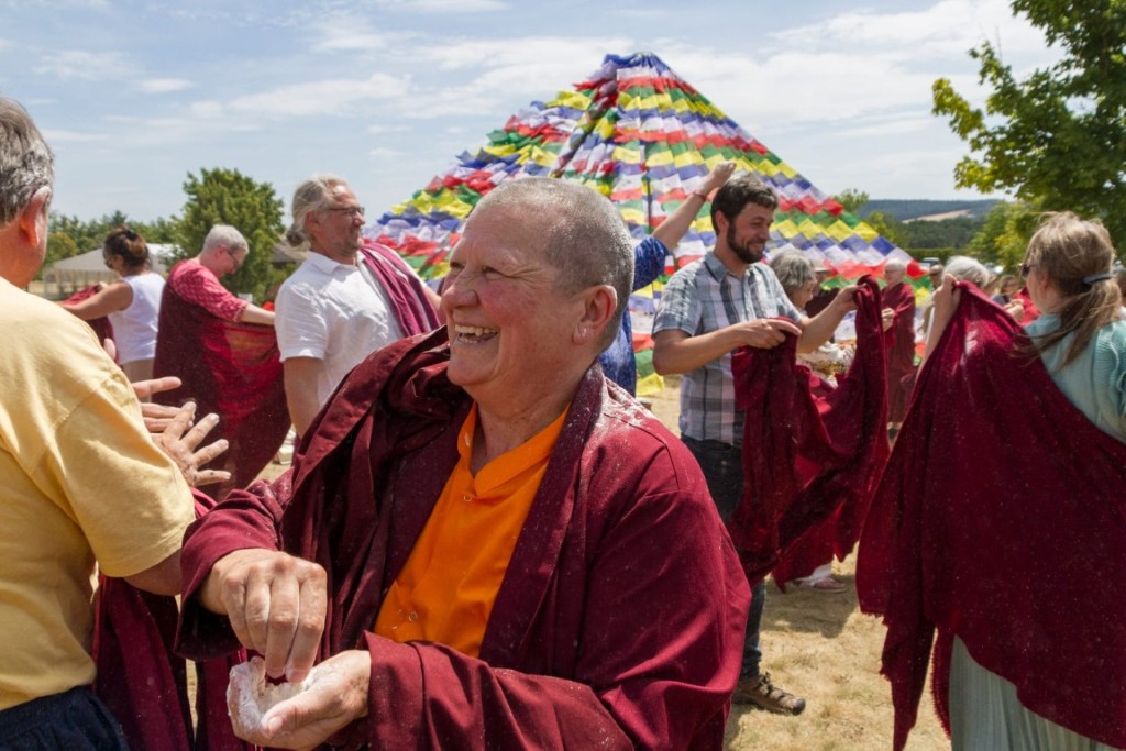 These blessed days brought a wonderful cohesion to the sangha as everyone harmoniously moved between hearing the teachings, practicing in the chö gar, engaging in daily group practice, community life, and the shared responsibilities of maintaining the retreat environment.